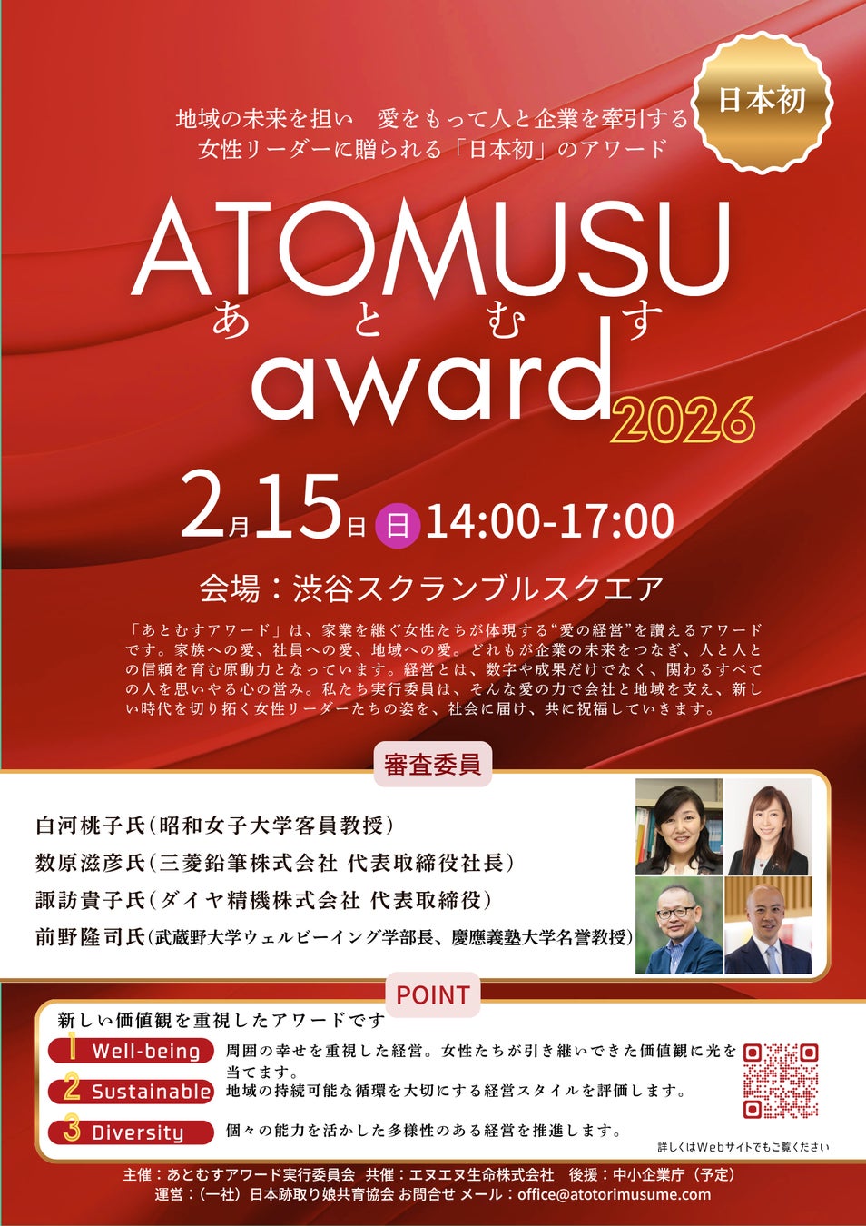 ダイバーシティ経営の新潮流 家業を継ぐ女性経営者、後継者を讃える日本初の「あとむすアワード」が誕生。2025年10月27日よりエントリー開始