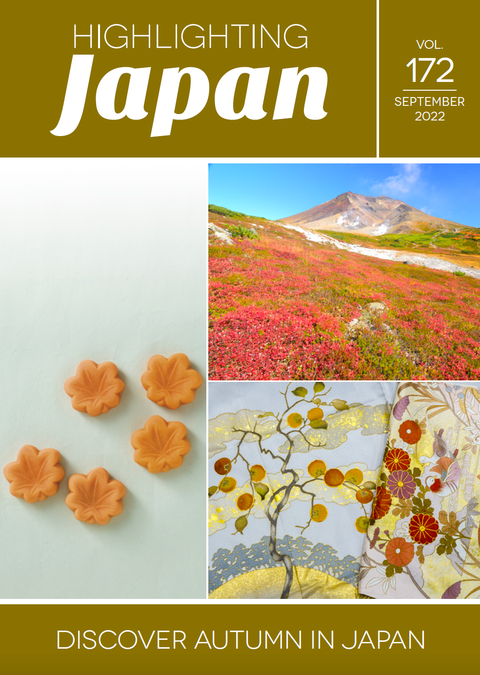 「HIGHLIGHTING Japan」は、内閣府政府広報室が発行する海外に向けの情報誌です。我が国に対する正しい理解と協力を得るため、政府全体の立場から政府の重要施策を紹介することを目的とする唯一の媒体で、2009年から発行されており、今回で172号となります。2022年9月号の特集企画である「日本の秋を見つける」において、京都の秋に気品を添える着物というテーマで、彩琳へ取材をいただきました。