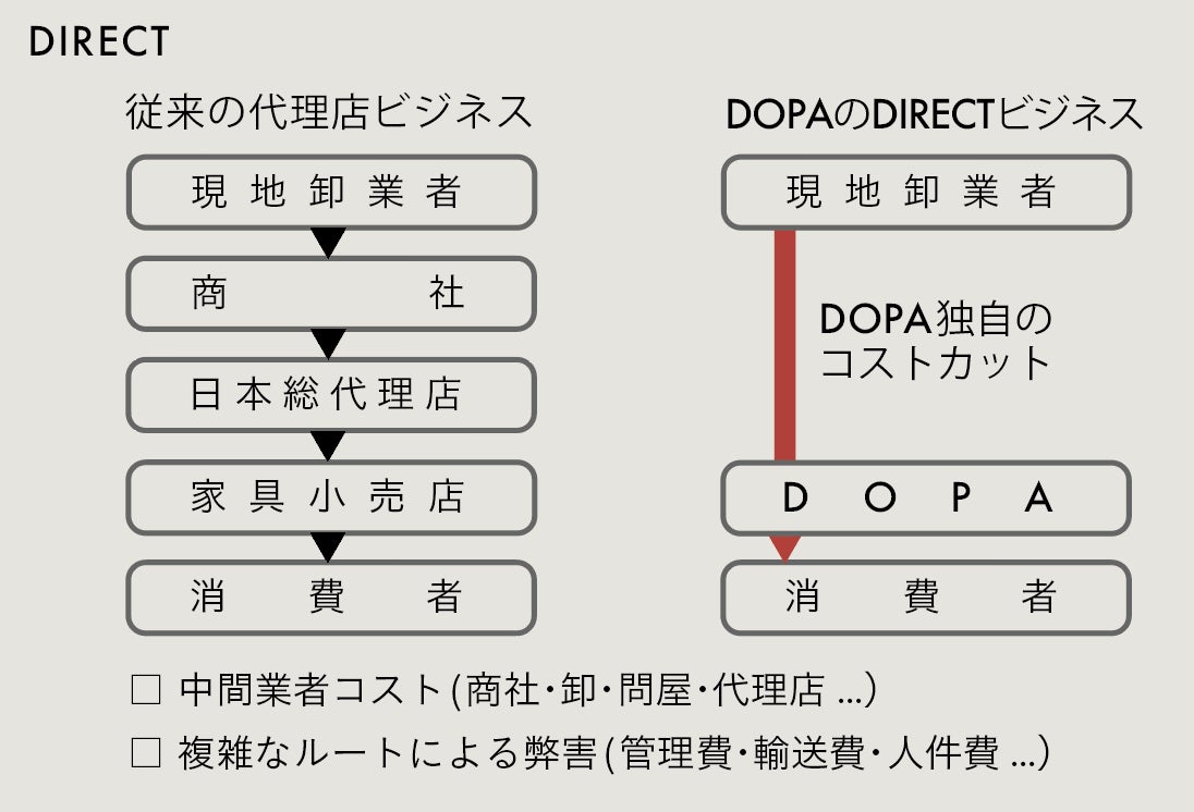 DOPAは欧州の老舗総合卸業者と独占契約を締結。商品を生産現地で調達することにより、商品原価の大幅削減を実現しました。