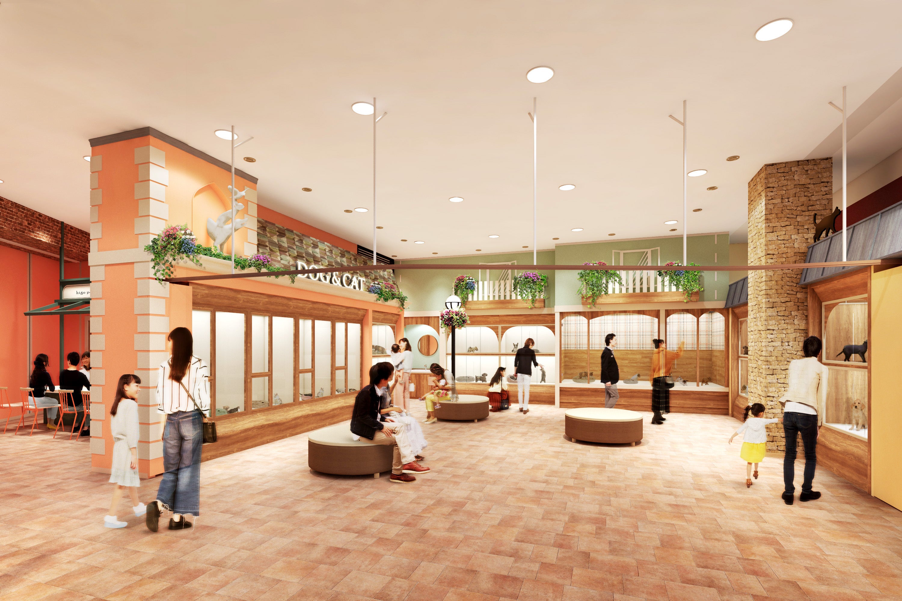 「HIGO RIVERSIDE TOWN」~可愛い仲間たちと踊る街~をショップコンセプトに、ペットとの身近なふれあいシーンを生み出す空間をご提案。