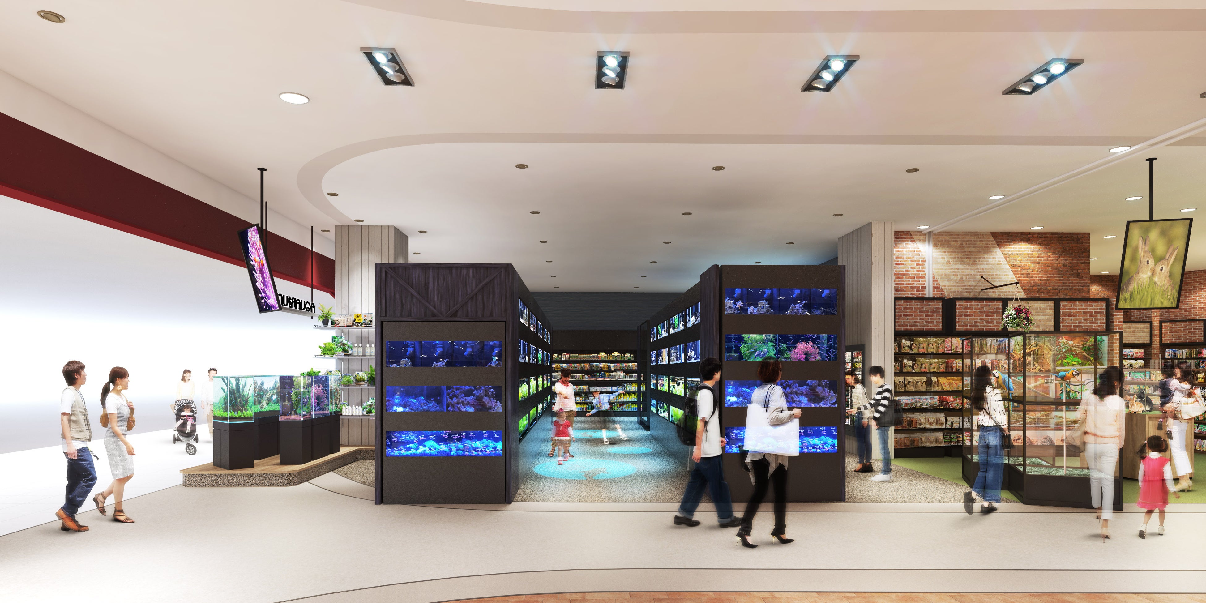 は虫類、両生類、昆虫、観賞魚、水草、アクアリウムまでを網羅し、トリミングルームやペットホテルを兼ね備えた総合専門ペットショップとなる予定です。