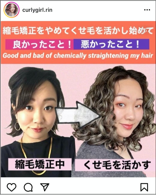 ですが大人になり海外で生活した時に、ルームメイトの「(ストレートヘアが美しい)それは誰が決めたの?」という言葉を聞いて、目からウロコが落ちました。見渡してみると、お店ではくせ毛用商品のコーナーが設けられ、くせ毛がひとつの個性として市民権を得ている事に気付きました。その後、アメリカで提唱されたCGM(カーリーガールメソッド)と呼ばれるくせ毛に合ったケアを実践した事で、それまでコンプレックスだったくせ毛に魅力を感じることができるようになり、毎日が楽しくなりました。