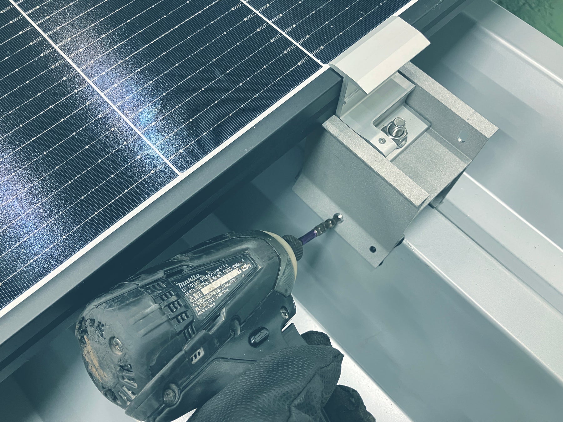 パネル設置/金具固定もすべて後ろからの作業となるため、パネルに乗っての作業が不要。パネル上での作業をなくすことで、マイクロクラックの原因をなくし、かつ作業員の安全も確保できるようになりました。