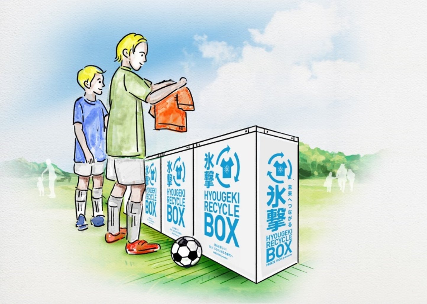 活動の第一弾として、小学生の親子を対象に「氷撃 SOCCER SCHOOL」を2022年7月16日(土)に開催します。当イベントでは、不要になったTシャツと引き換えに、汗と風で驚きの冷感が持続する「フリーズテック」のウェアと交換することができる「氷撃リサイクルボックス」を設置※。参加者それぞれが持ち寄ったTシャツがリサイクルに繋がるだけでなく、暑さ対策を行う事でより快適で安心にスポーツができる環境を提供します。