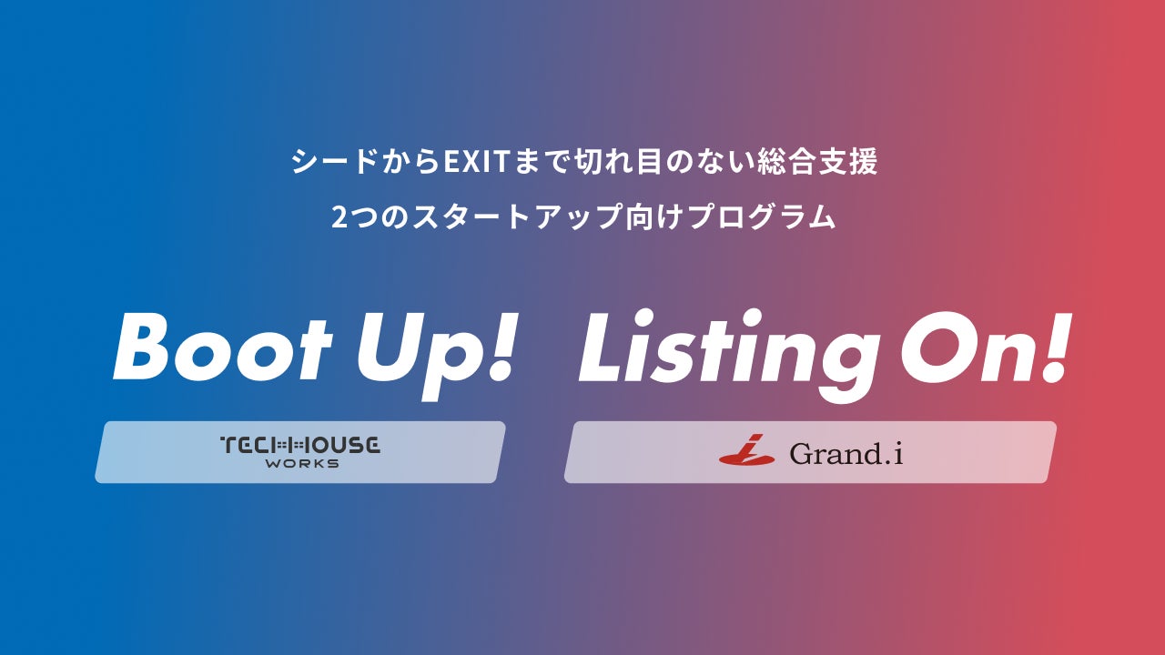 TechHouse.WorksとGrand.iは、「Boot Up!」「Listing On!」を通じて、スタートアップが直面するシード期~アーリー期の混沌を抜け、次のスケールや必要な資金調達に向かうための「加速装置」となることを目指します 。