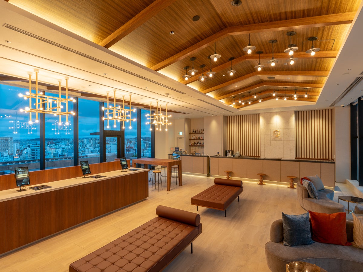 デザインコンセプトは「Ryukyu × Mid-Century」、都会の中にありながらレトロでどこか懐かしさを感じさせる空間を演出致しました。那覇市内でもトップクラスの高さを誇る、17階のルーフトップラウンジからは、那覇市内の街並みや東シナ海を見渡すことができ、リゾート気分を盛り上げてくれます。また、夕暮れ時には、那覇空港へと降下する飛行機とサンセットをバックに、絶好のフォトチャンスをお楽しみいただけます。