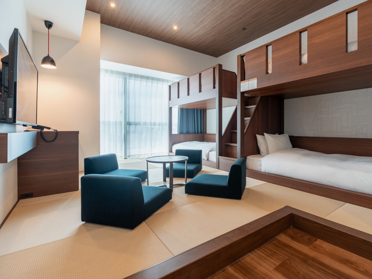 多様化する宿泊ニーズを鑑み、ダブルルーム・ツインルームのみならず、2段ベッドを利用して最大4名が宿泊可能なファミリールーム、開放的な大きな窓が特徴のジュニアスイート(44.5㎡)を用意致しました。小さなお子様連れのご旅行や、記念日などの特別な日のご宿泊でも、快適なご滞在を約束いたします。