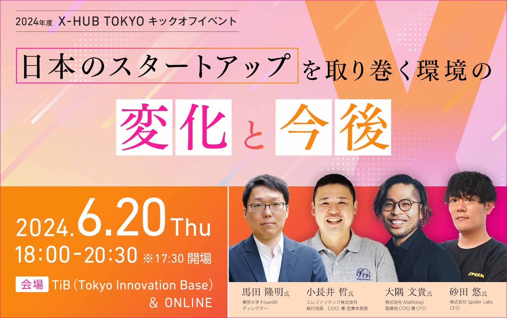 イベントの前半では、東京大学FoundXのディレクターである馬田 隆明氏をお招きし、「日本のスタートアップエコシステムのこれから」をテーマに、日本のスタートアップを取り巻く環境の変化や、初期段階から世界を視野に入れて海外展開を目指すことの重要性等について語っていただきます。