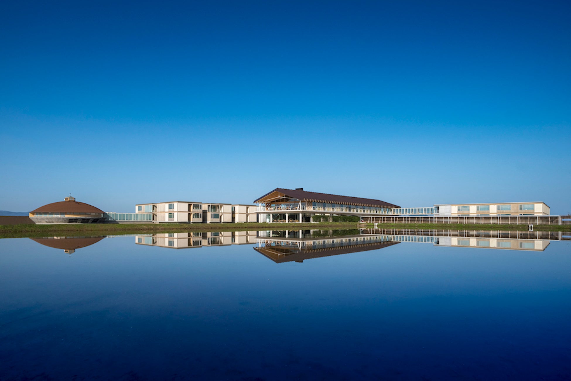 出羽三山から庄内平野、そして日本海へ。美しい水の循環に育まれた山形県庄内地方。この土地を象徴するランドスケープである水田から着想を得て生まれたホテルがSHONAI HOTEL SUIDEN TERRASSEです。田んぼに浮かび、周囲の山並みや田園風景に溶け込むような佇まい。木のぬくもりを生かしたシンプルで居心地のよい空間。どこに身を置いても田んぼの気配を感じられるようデザインされたこのホテルで、晴耕雨読の時をお過ごしください。
