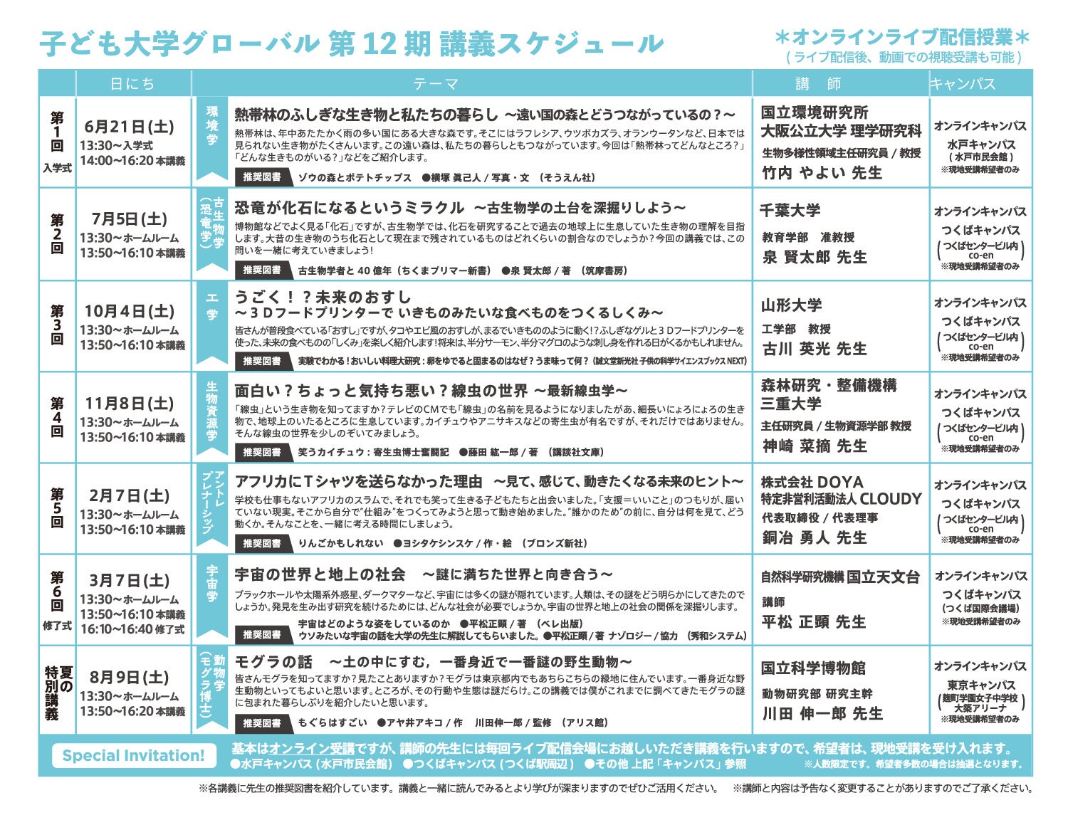 「年6回+夏の特別講義」の年間を通したワクワク講義!