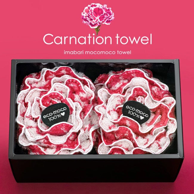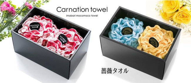 「カーネーションタオル」と「薔薇タオル」は、2008年にグッドデザイン賞を受賞した“モコモコタオル”をベースにそれぞれ母の日・父の日に贈る花“カーネーション”と“薔薇”をモチーフに作られたオリジナルタオルです。