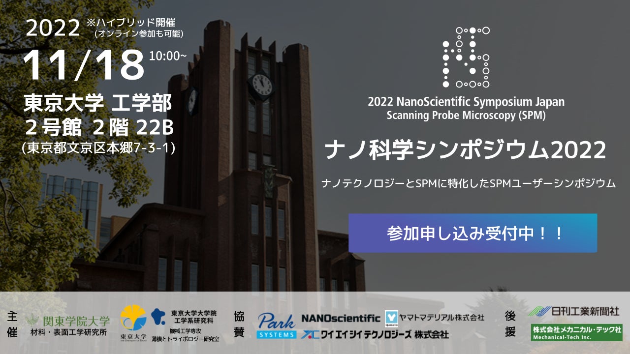協 賛:パーク・システムズ・ジャパン株式会社、NanoScientific、ヤマトマテリアル株式会社、ワイエイシイテクノロジーズ株式会社