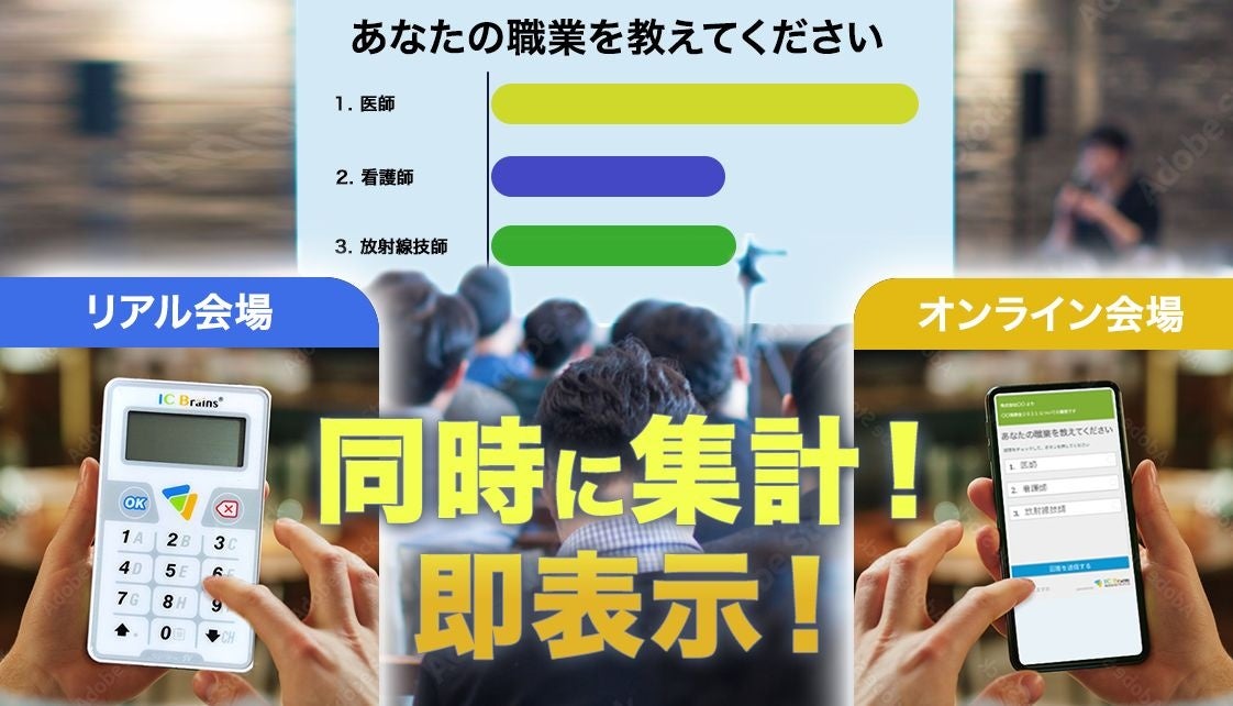 株式会社ICブレインズ(本社:東京都品川区、代表取締役(CTO):工藤 正一、以下「ICブレインズ」)は、木村情報技術株式会社(本社:佐賀県佐賀市、代表取締役:木村 隆夫、以下「木村情報技術」)と共同で、リアル会場の専用端末(アンサーパッド)とWeb講演会の視聴者による投票を即時合算・表示できる**『講演会向けハイブリッド投票システム』**を強化し、2025年10月より提供を開始します。