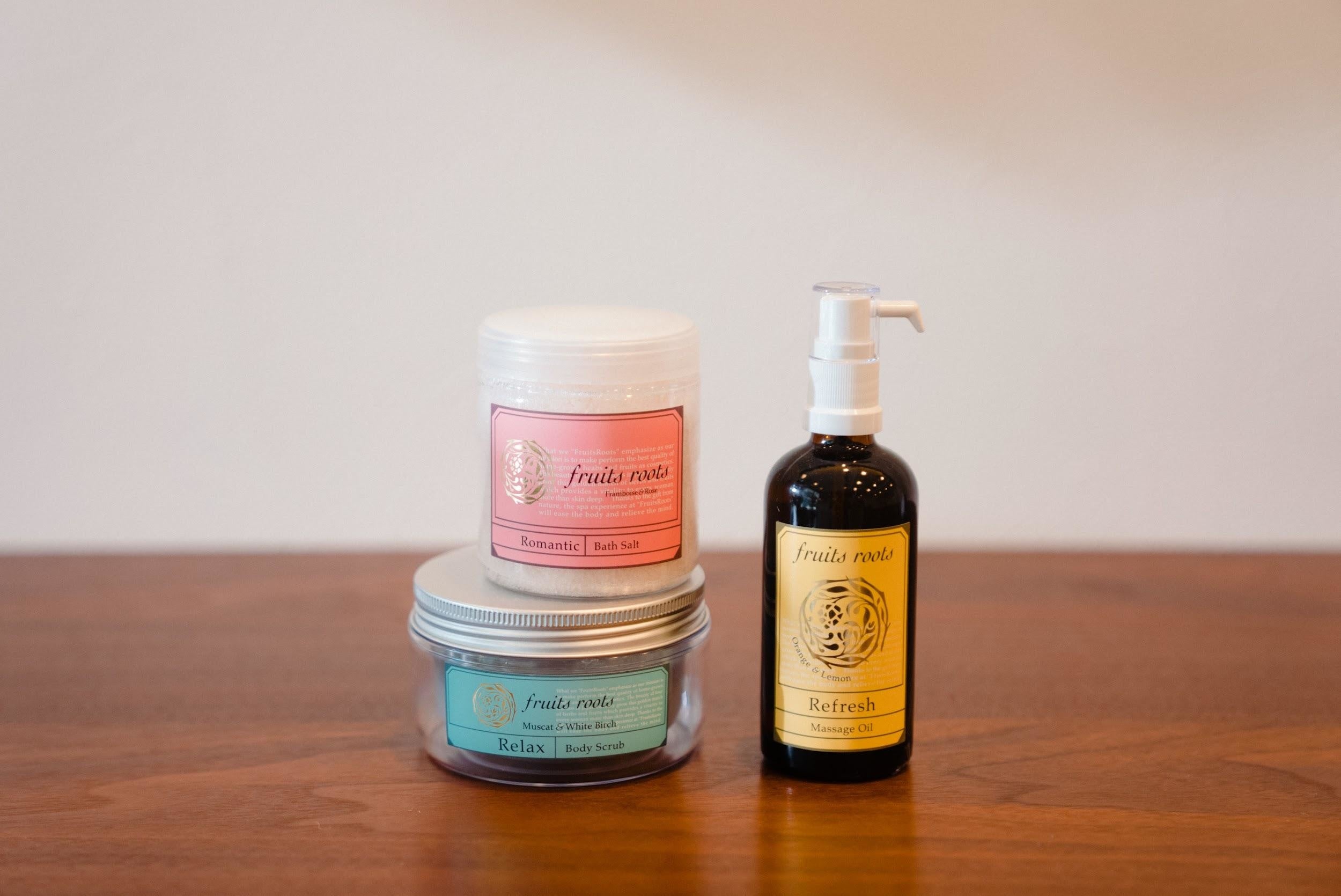 ▷ボディスクラブ(Refresh、Relax、Romantic)¥3,960 180ml/マッサージオイル(Refresh、Relax、Romantic)¥5,500 100ml