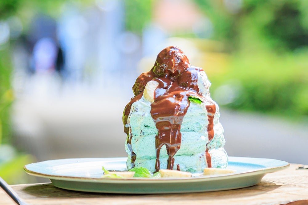 その中でもチョコミント味のパンケーキは、1年を通して一番の人気商品で全国から本当にたくさんのお客さまにお越しいただいております。