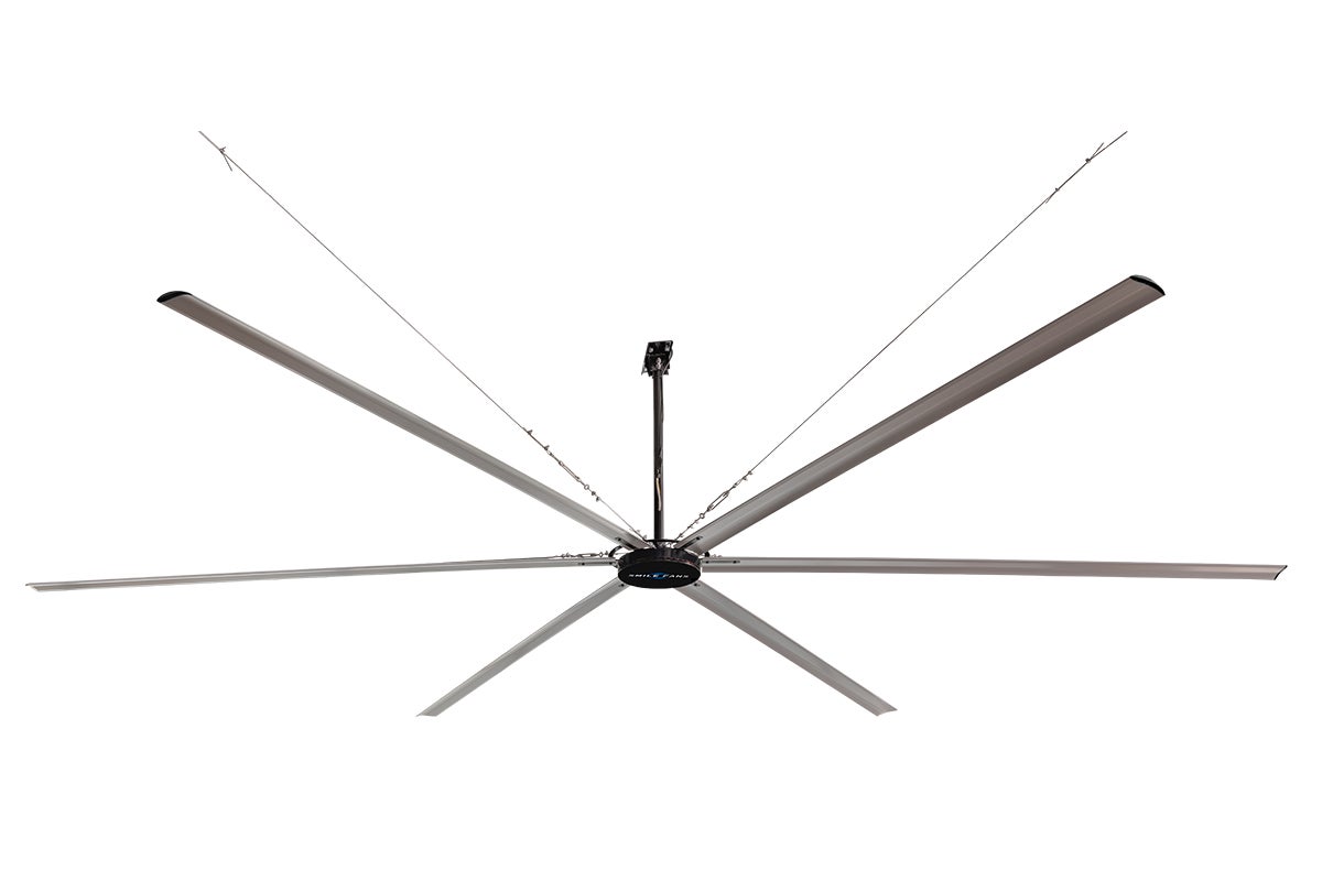 スマイルファンは倉庫・工場・商業施設などの空調管理の課題を解決する気流発生装置です。気流を作ることで最大25m先まで心地よい風を届けられ、またエアコンと併用した場合は冷暖房効率を大幅にアップさせます。