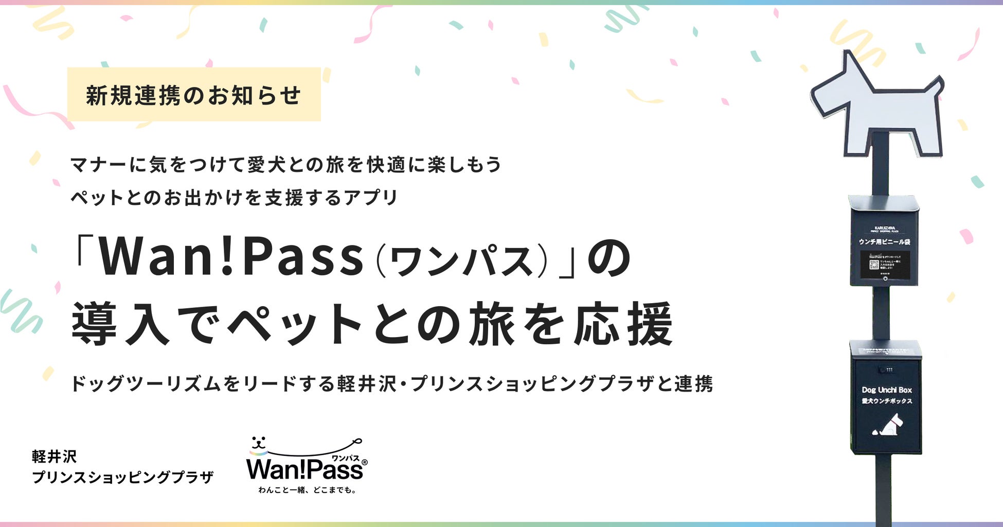 ペットのお悩みサービス相談や、ペットとのお出かけを支援するアプリ「Wan!Pass(ワンパス)」を展開するペッツオーライ株式会社(東京都江東区、代表取締役:小早川斉)は、国内有数のリゾート型ショッピングモール「軽井沢・プリンスショッピングプラザ」(以下、「軽井沢PSP」)において、ワンちゃんと同伴できる施設や各店舗における入店ルールなどが確認できるアプリ「Wan!Pass(ワンパス)」を展開いたします。