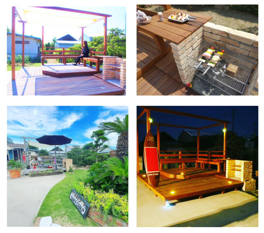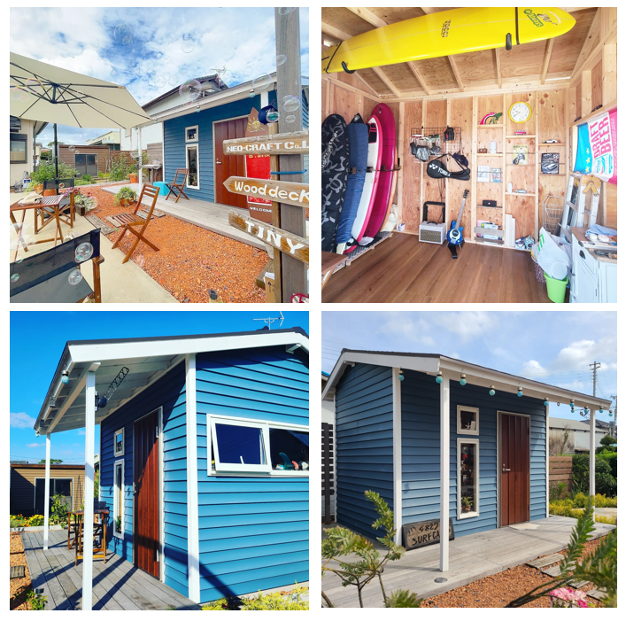 海沿いSURF CAMP OAMI(千葉県大網白里市北今泉)は、県内でも珍しいウッドデッキ、小屋TINY展示場です。