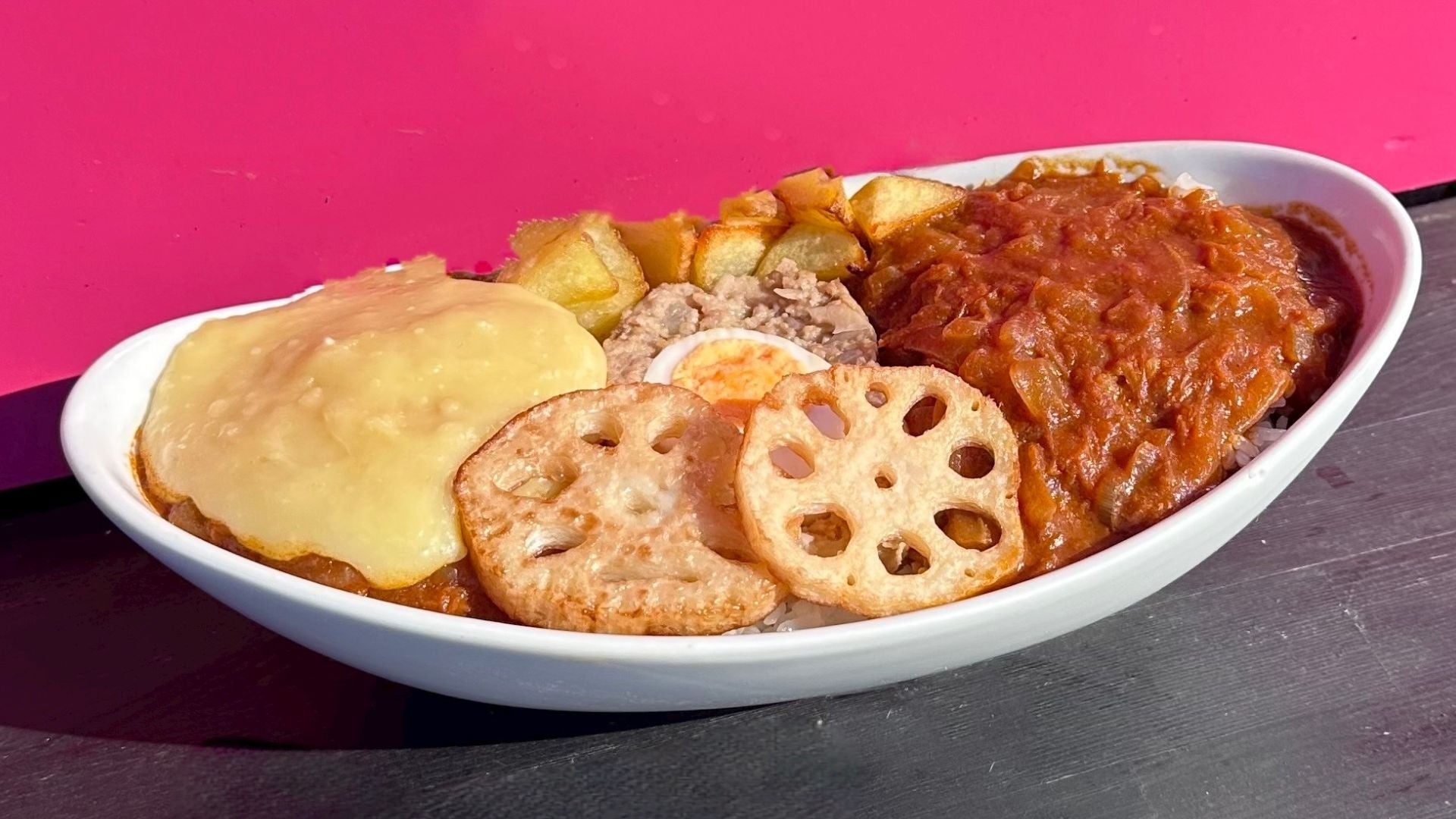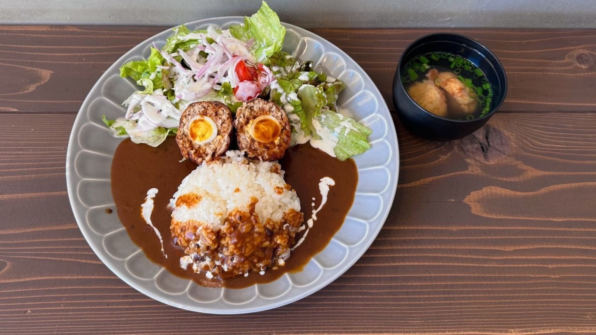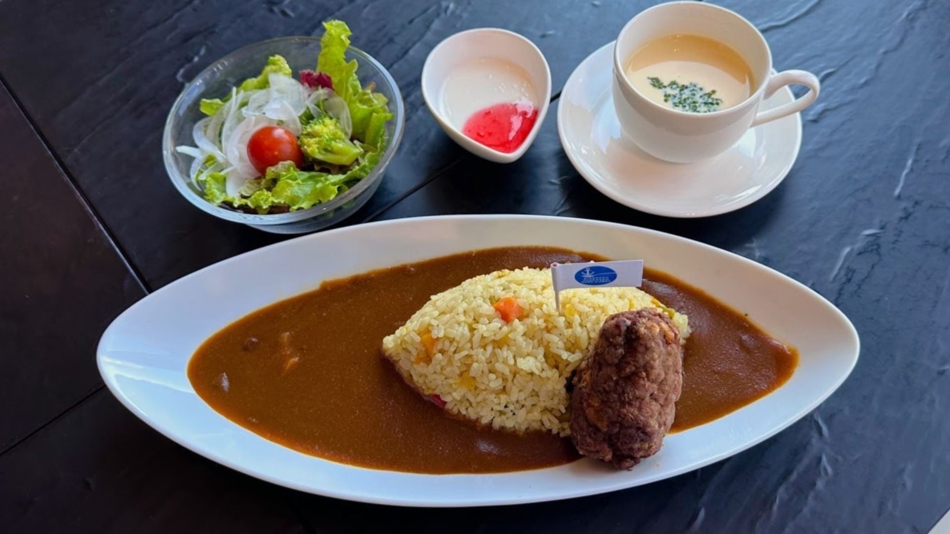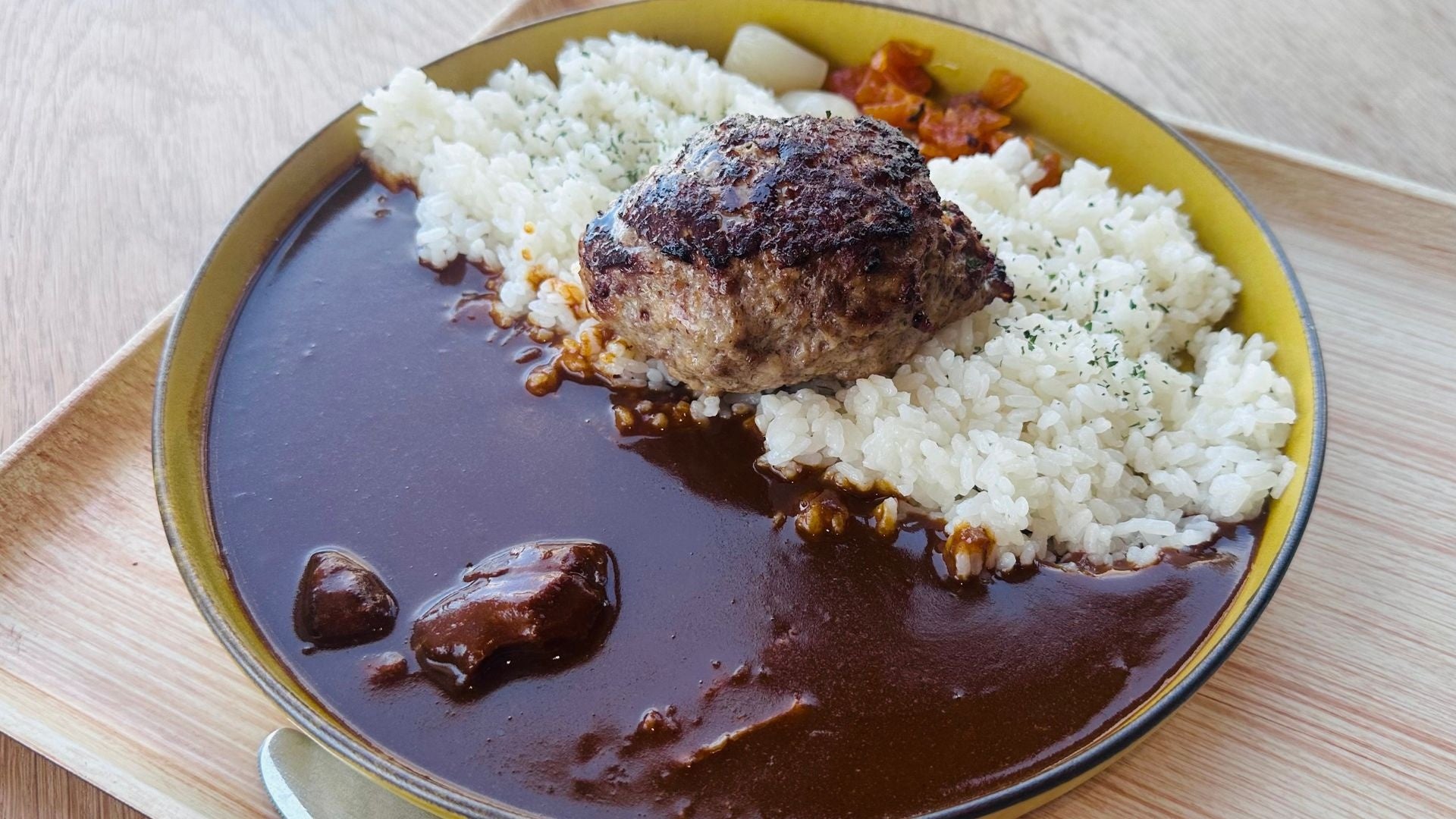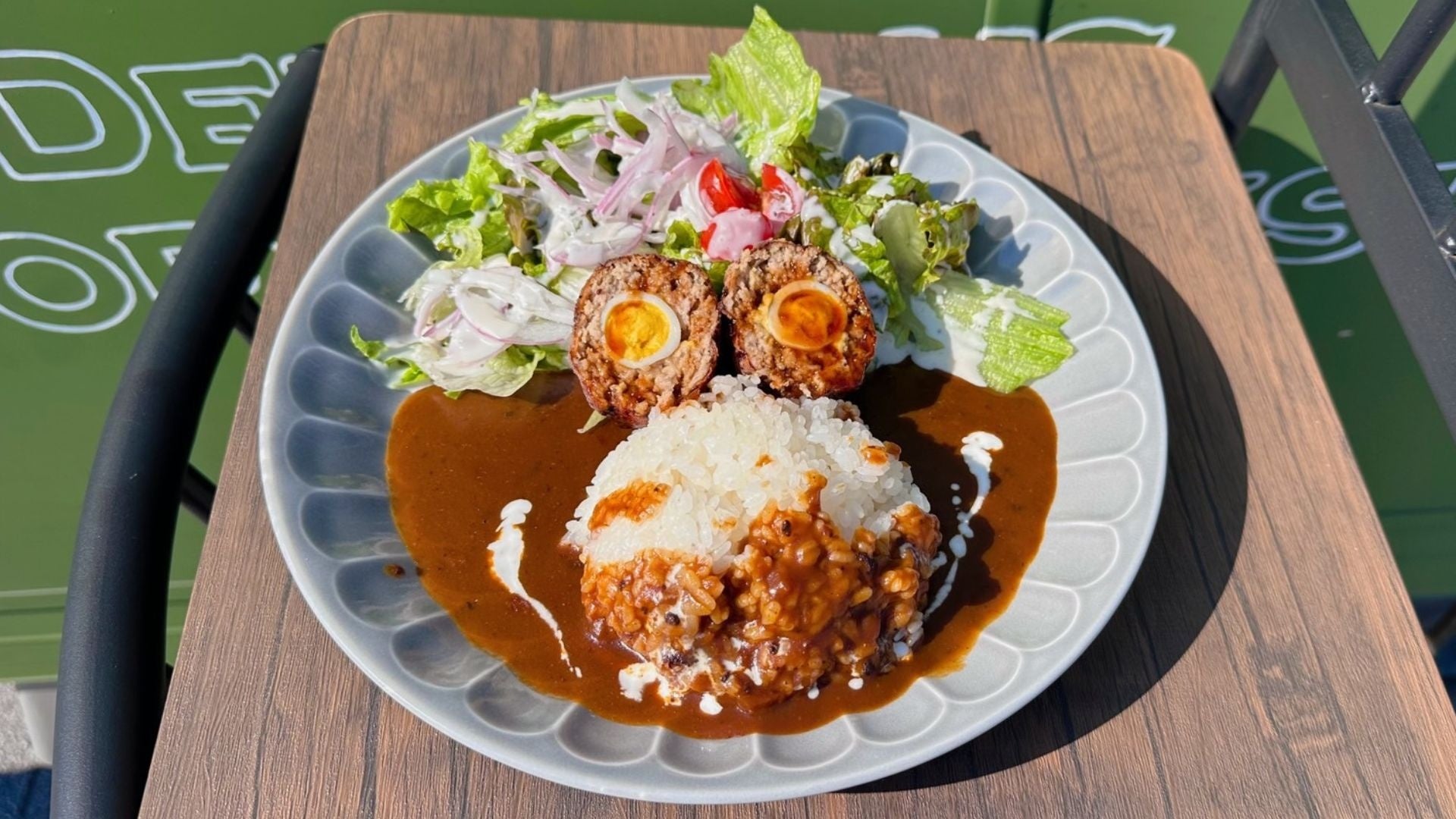 海軍における代表的洋風料理である「フーカデンビーフ」。玉子を牛ひき肉で包んで蒸し焼きにしたもので、明治41年に発刊された海軍の料理参考書である「海軍割烹術参考書」に掲載された海軍の代表的洋風料理です。現代のミートローフに近い一品で、明治から昭和まで時代ごとに様々な調理法で海軍将兵の舌を楽しませてきました。そんな海軍の代表的洋風料理フーカデンビーフを木更津にある海上自衛隊航空補給処が復刻、カレーにトッピングして隊員に提供しているのが、木更津「海自」フーカデンビーフカレーです。
