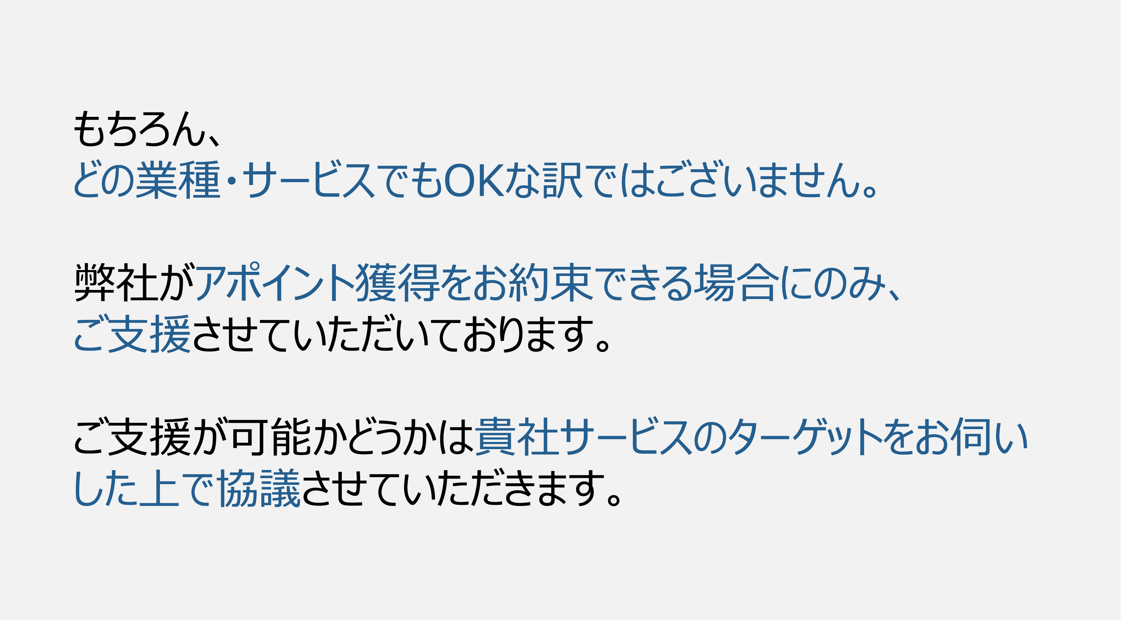 【支援期間3ヶ月、アポイント20件、20万円】のお試しプランを展開いたします。