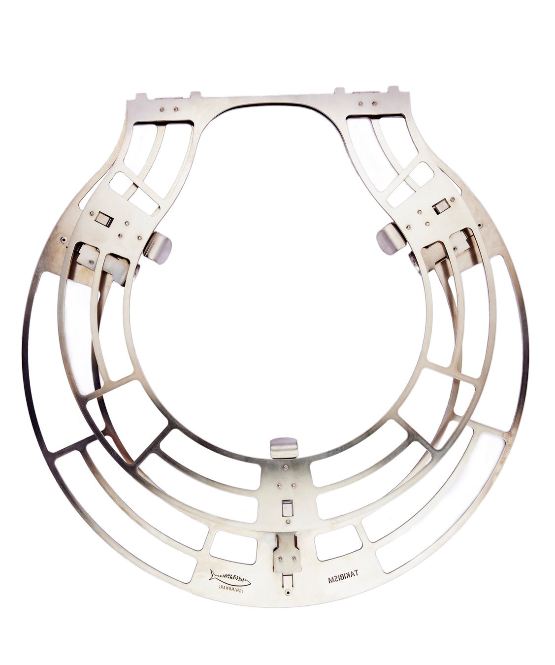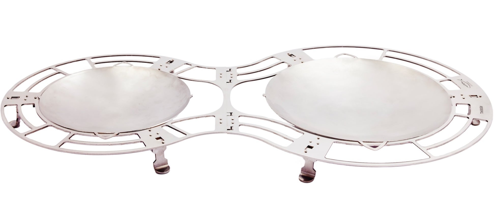 2つの炉を持つTAKIBISM JIKABI TWIN ISHINOMAKIは、今回のキーワードである「小さな焚き火」と「美しい焚き火」の2種類を同時に楽しめるモデルとなっています。人数や料理、環境などに合わせ自由で豊かな使い方が可能です。展開時87.5㎝にもなる大きさの本体フレームは中央部分にヒンジを採用し、折りたたみが可能で持ち運びも楽に行うことができます。三和工業株式会社の緻密な設計と精緻な加工技術により製造されます。槙塚鉄工所の魂を込めて打ち出すハンドメイドの炉皿(1つはJIKABIシリーズ最大の33cm)と本体フレームが互いを引き立て美しいプロダクトとして昇華しています。