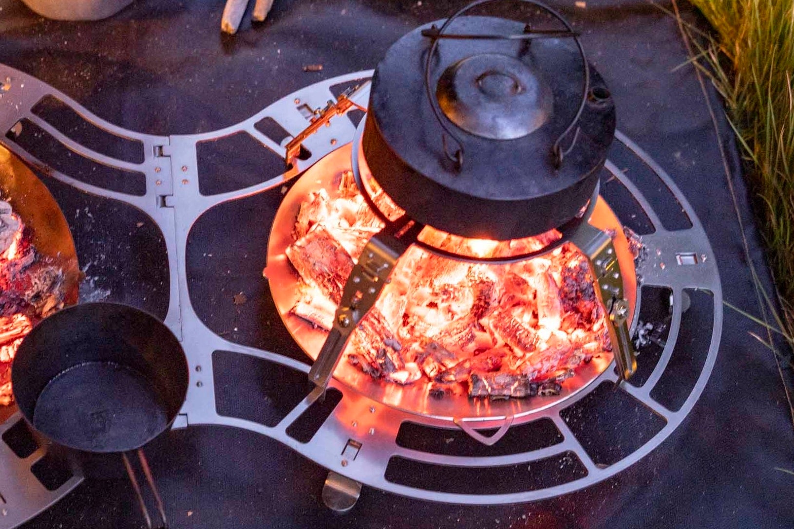 全てのTAKIBISM JIKABIシリーズに対応し、火からの距離を調整できる伸縮式の五徳です。今回も石巻の三和工業の職人により発案され、焚火台と共に石巻市在住のデザイナー阿部友希氏がデザインしました。耐荷重10kgとGOTOKUシリーズ共通のスペックを持ち、重たいやかんや鍋を組み合わせる楽しさをプラスできます。