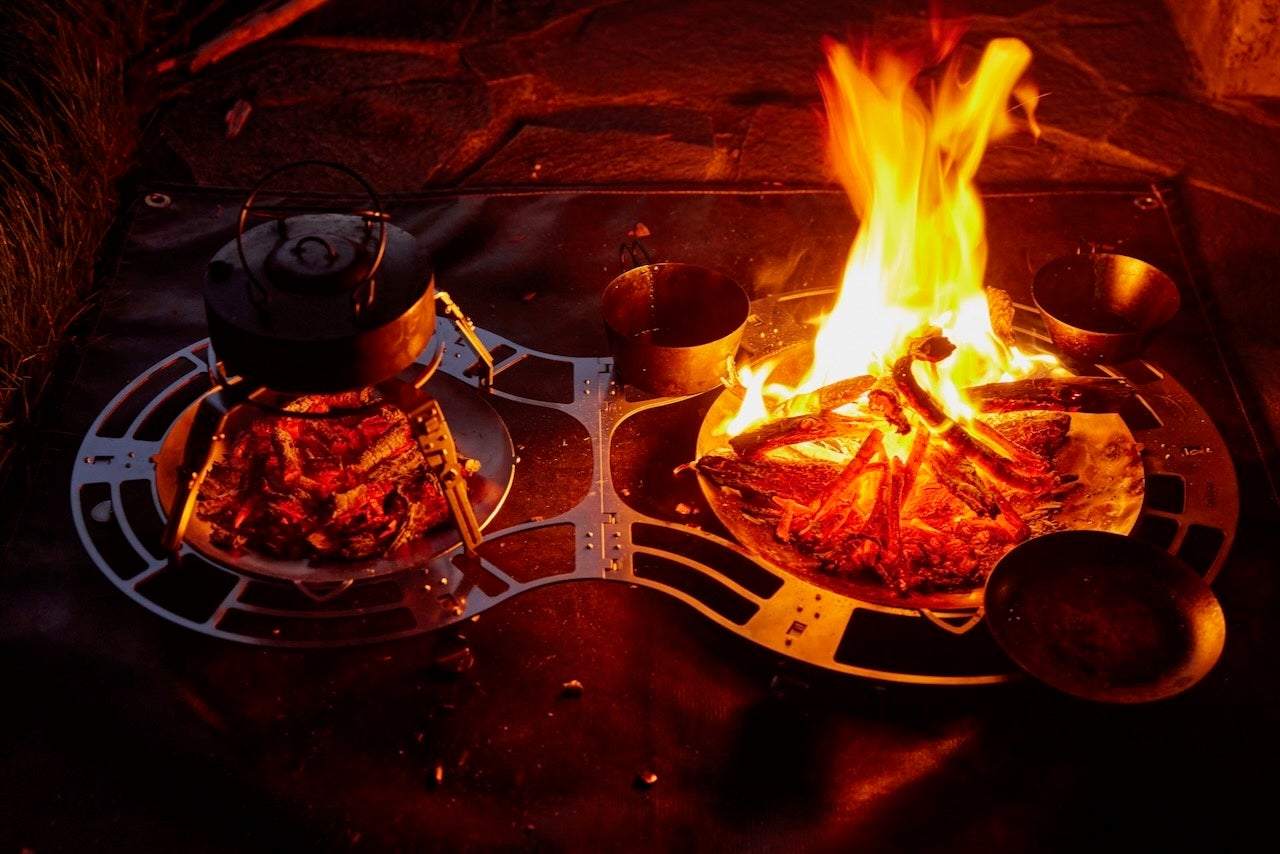 石は焚き火にとって身近なものですが、今まで石に注目した焚き火台はありませんでした。本製品は石を焚き火台の一部として構成し、その石を自ら探すことで、世界に一つだけの焚き火台を創ることができます。焚き火を環境や料理などを考えながら、その時々に適した石探しの経験を重ね、石への理解や発見を深めるのも「STONE QUEST」の楽しみです。