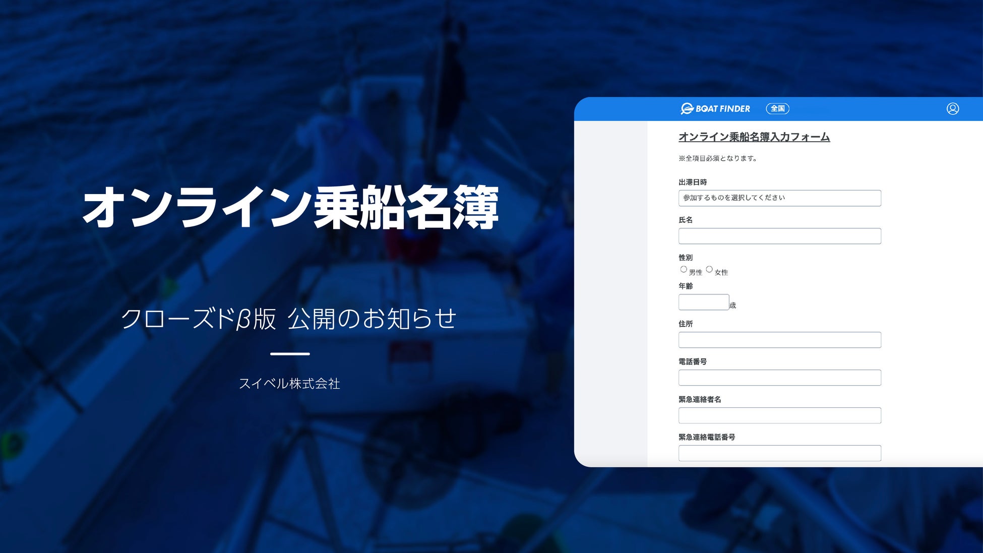 釣り船向けDXスタートアップのスイベル株式会社が新サービス「オンライン乗船名簿」のクローズドβ版の提供を開始