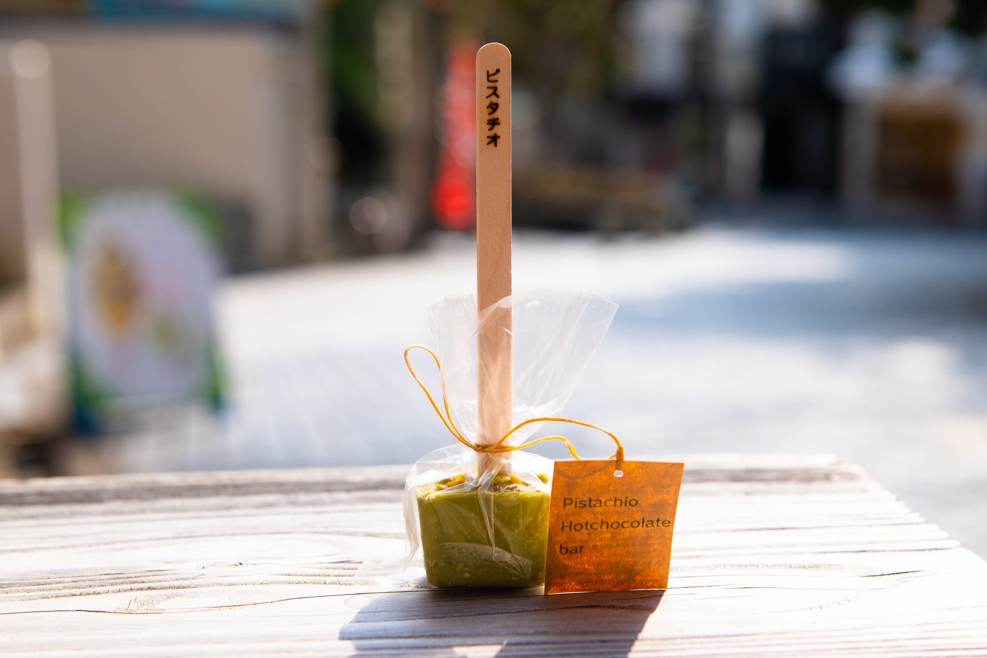 お家やお店でお客様自身に、ホットミルク等に溶かし込んで頂く事で、味の変化を楽しみながら「ホットピスタチオチョコミルク」として完成をして頂くプチ体験型商品となっております。