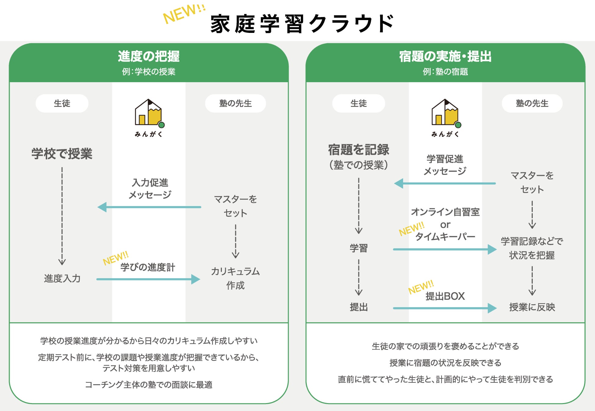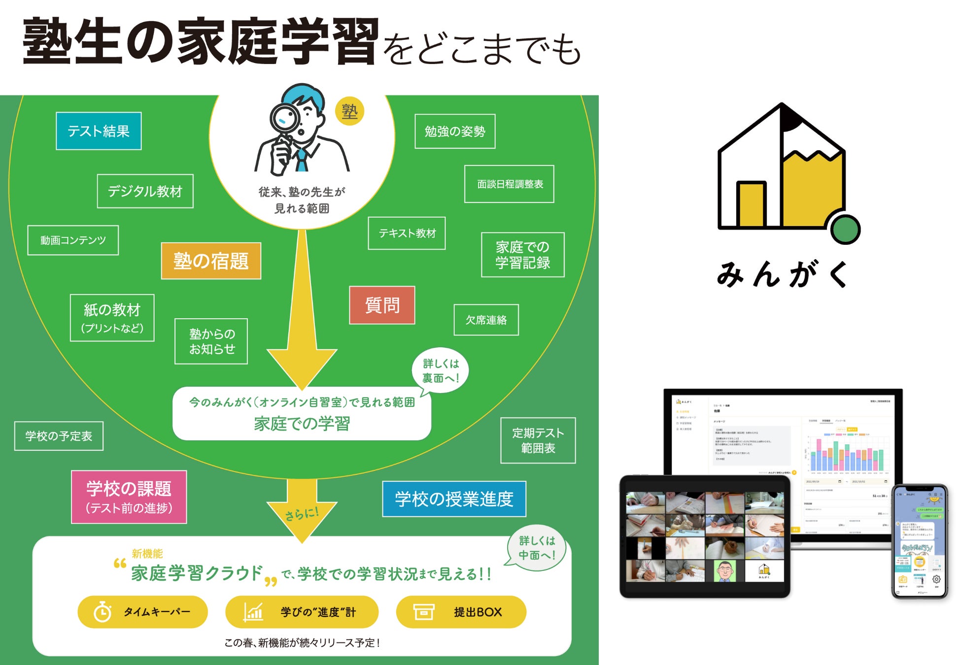 塾の垣根を超えた合同オンライン自習室「みんがく」が、新サービス「家庭学習クラウド」を発表