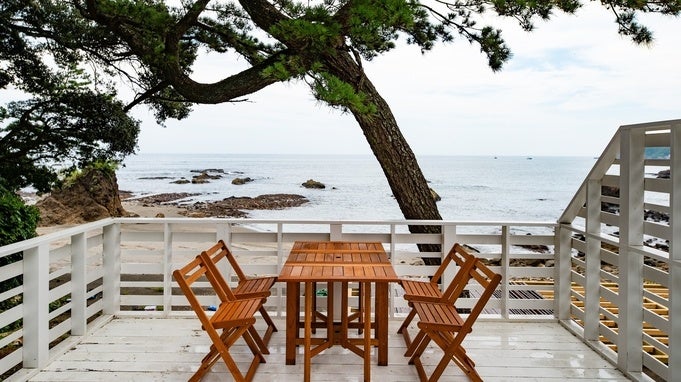 プライベート感を漂う海が一面に広がり、伊豆七島の新島や神津島などがよく見えます。シュノーケリング、海遊びができ、遊んだ後はそのままBBQなどが楽しめます。
