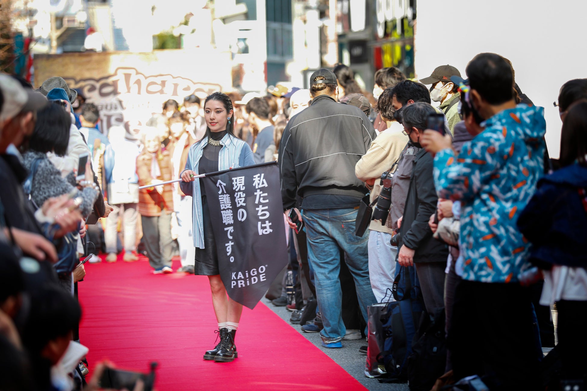 「見てる観客の方が笑顔で温かく迎えてくれてクールな演出を受けていたのにも関わらず終始笑顔になってしまいました。自分が思っているよりもいろんな方が応援してくれてる業界なのかなって歩いている時に思って。こういう取り組みで若い方に介護業界の仕事や魅力やクリエイティブさを知ってもらえて、結果的に人手不足とかに貢献できるようになればと身を持って感じました。」