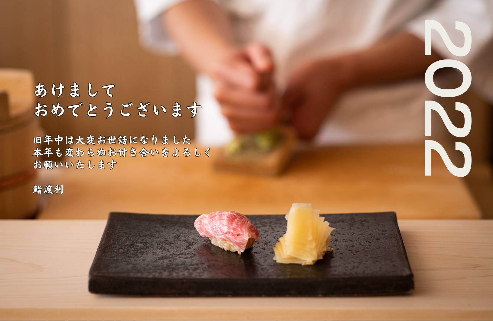 「鮨 渡利(渋谷区渋谷、店主・渡邉哲也)」は2022年1月1日、渡利の会員に対してデジタル年賀状と会員権のNFTを配信する。配信された年賀状NFTには、1月29日および30日に開催される寿司食べ放題イベントへの参加券が付いており、年賀状NFTの所有者は無料で参加できる。