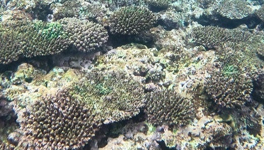 これは、サンゴが死んでしまった白化と言われる状態です。
