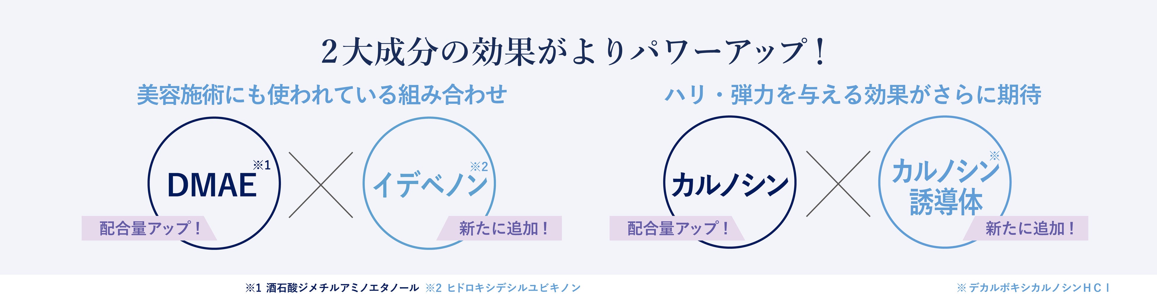 1)2大ハリケア成分 DMAE※1 とカルノシン※2 の配合量最大200%※3