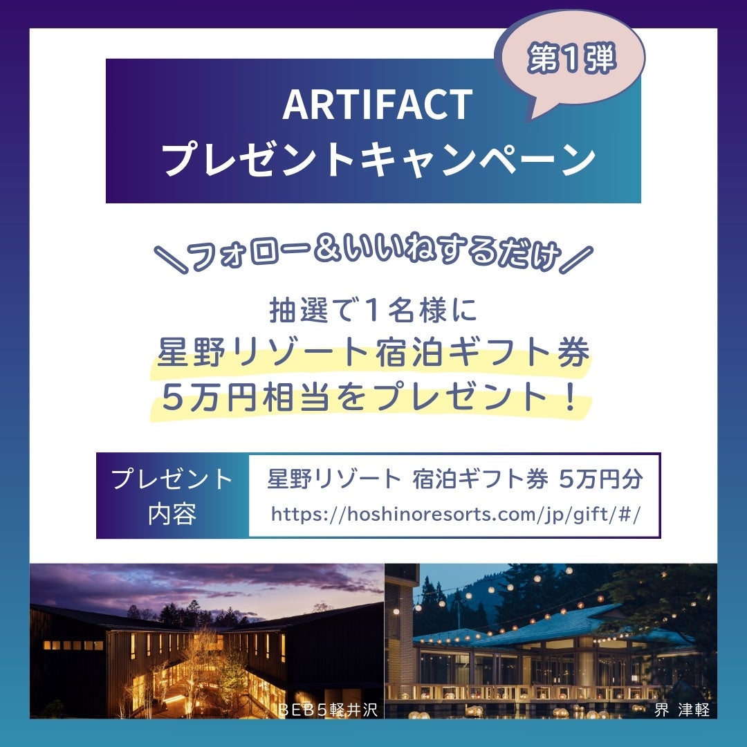 期間中にアーティファクト公式Instagramアカウント(@artifact_af)をフォローし、キャンペーン投稿へのいいねを押すことで、応募完了となります。
