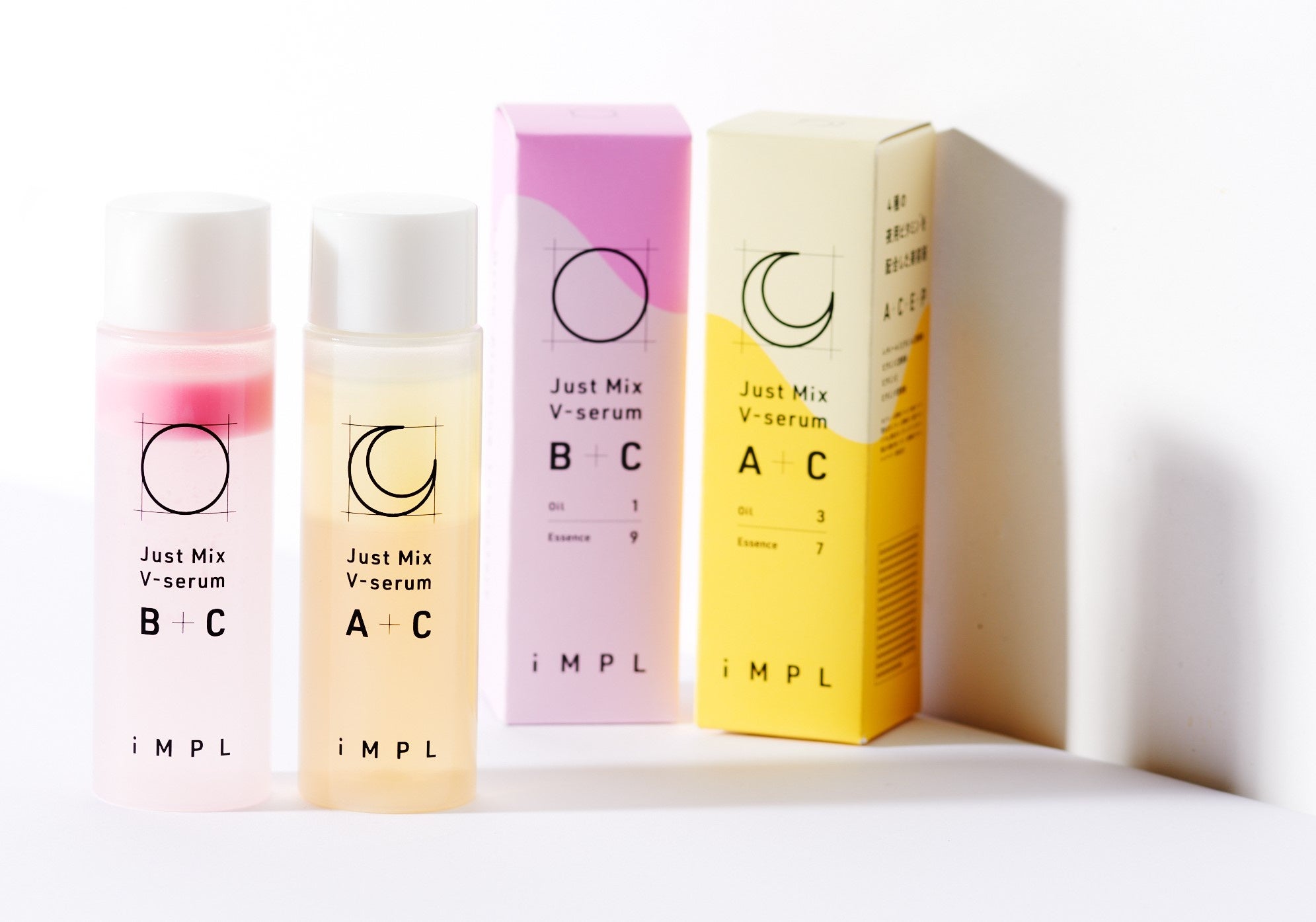 そして、今回「iMPL」では、第2弾として新たにデイリーケア向けの二層式美容液を発売。毎日のお手入れのための、朝用美容液「iMPL Just Mix V-serum B+C」と夜用美容液「iMPL Just Mix V-serum A+C」の2種類を展開します。