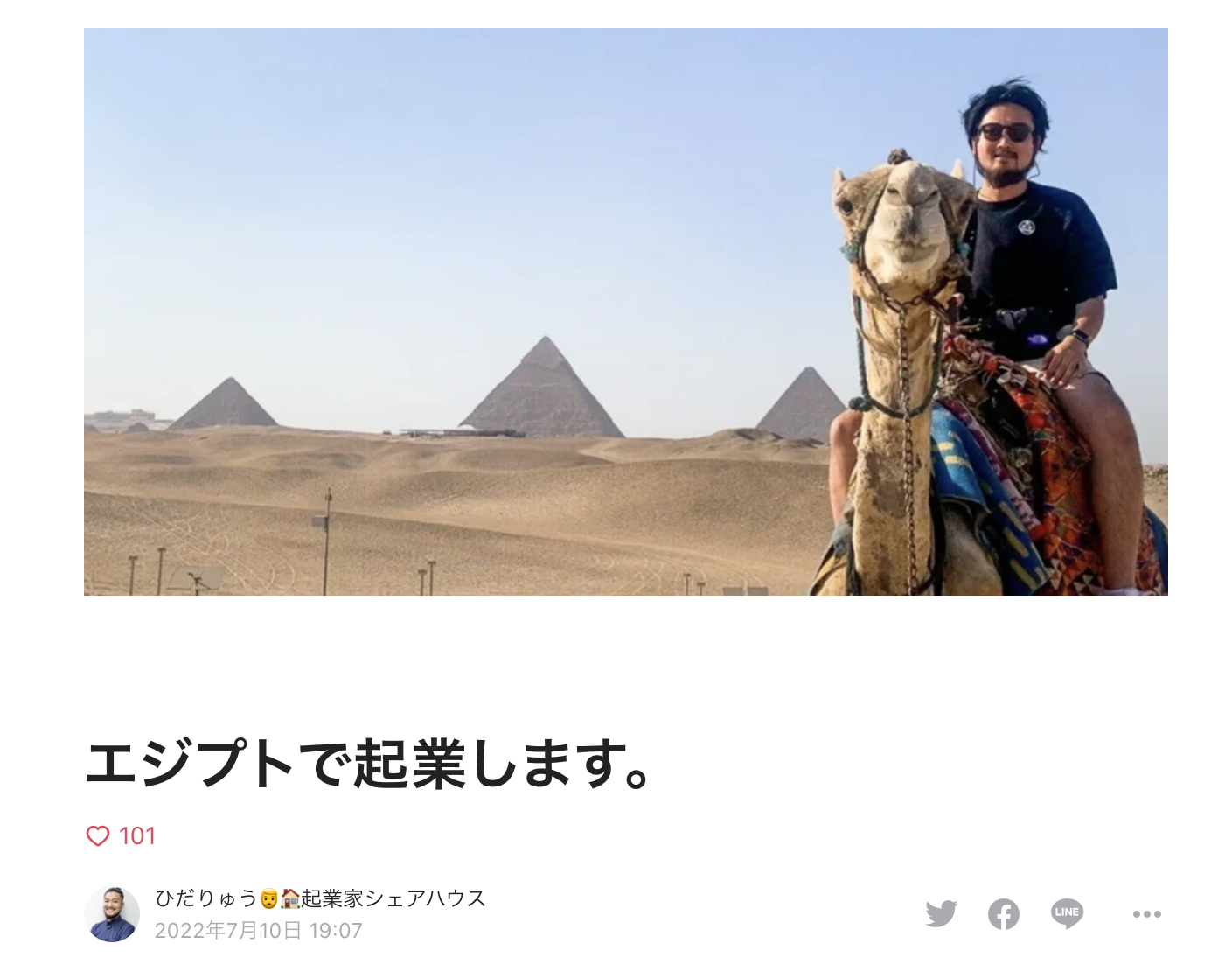 アメリカや東南アジアでの経験、またエジプト進出を決めた経緯などをnoteで公開しております。