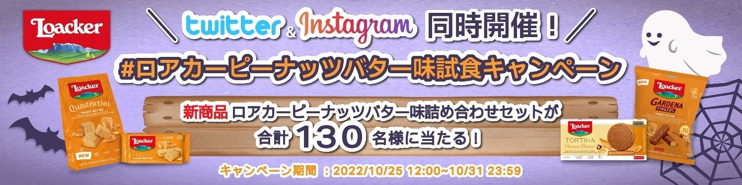 新フレーバーの発売を記念し、10月25日(火)12時より、新発売した商品が抽選で当たる“ロアカーピーナッツバター味試食キャンペーン”をTwitter・Instagramにて同時開催いたします。