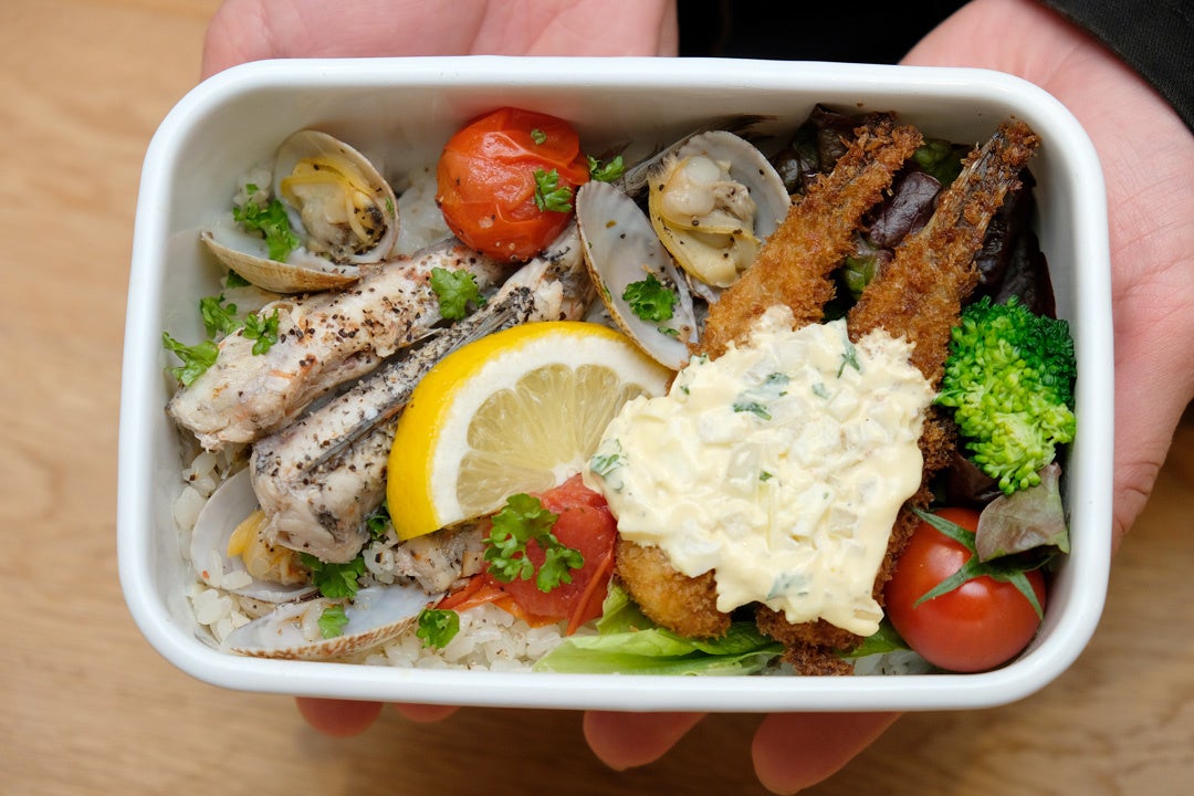 今回優勝した設計・桓本直紀さんのお弁当「スミクイウオのアクアパッツァとフライ弁当」