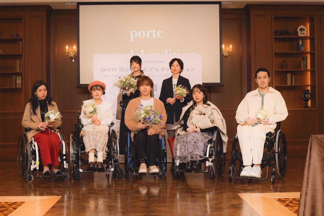アクセシビューティーは昨年、障がい者モデルが主役となるwebマガジン「porte」の、新人モデル発掘オーディションを初めて開催。社会全体で取り組む必要性をアプローチするため、最終審査をイベント形式で実施しました。資金調達を兼ねたクラウドファンディングと並行し、協賛企業やゲスト審査員・車椅子インフルエンサーなど、多種多様な皆様の御協力のもと、バリアフリー結婚式場(アヴァンセリアン東京)での開催が実現し、“障がい者モデル”という名を全国に拡げました。