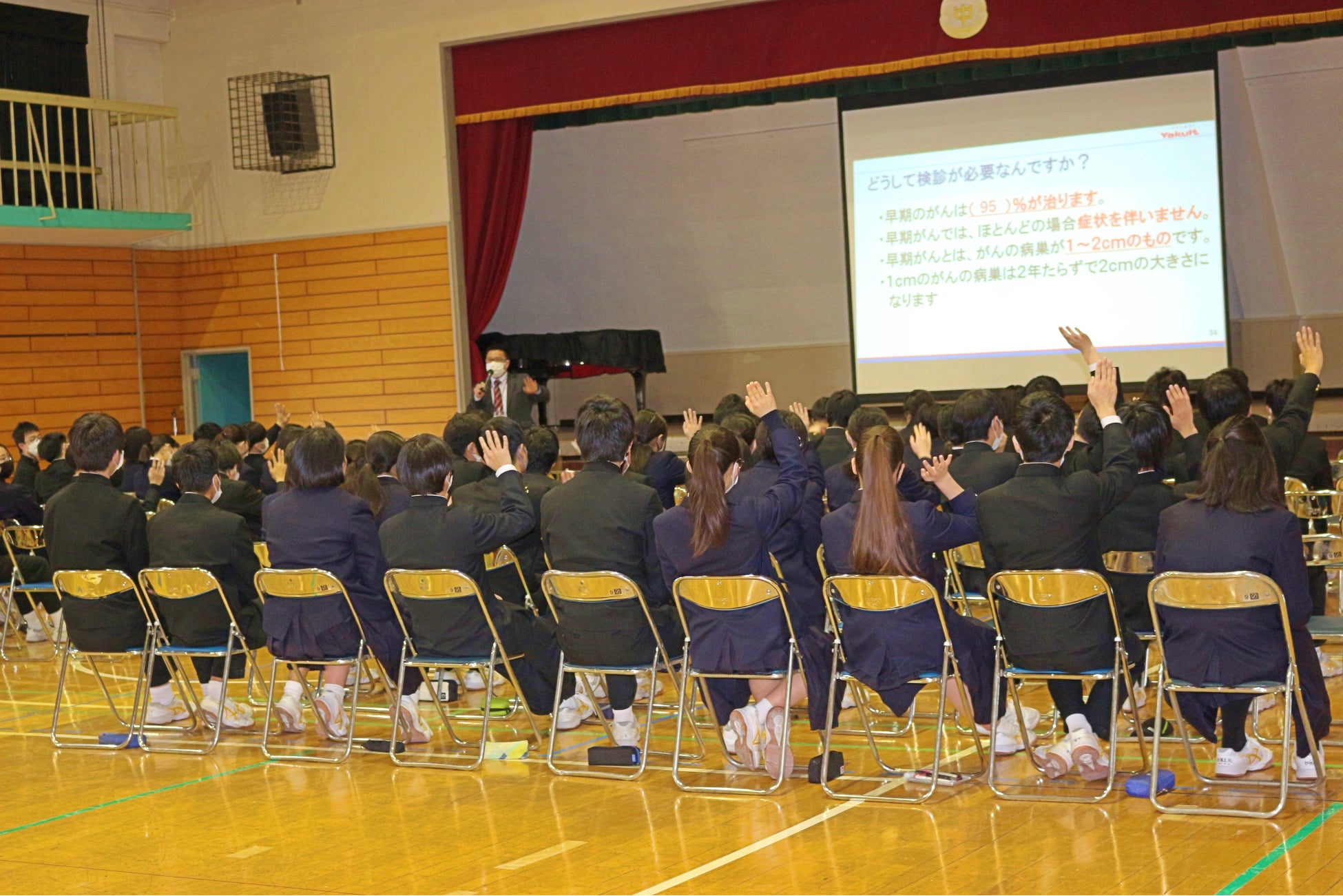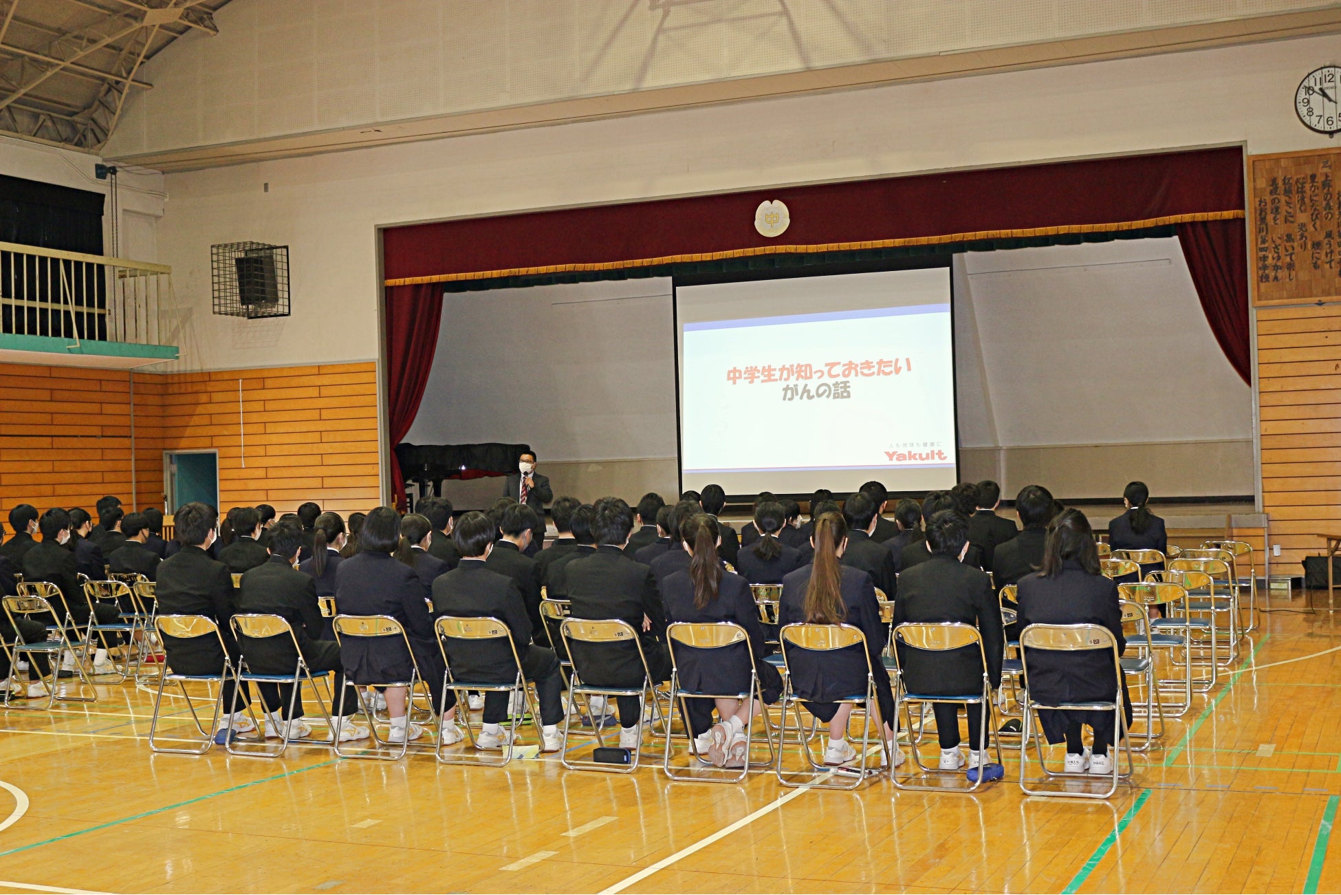 荒川区・足立区でのヤクルト販売を管轄している城北ヤクルト販売株式会社は3月8日、荒川区立第四中学校で三年生101名を対象に、「中学生が知っておきたい、がんの話」と題して、がん検診の重要性を伝える出張授業を行いました。