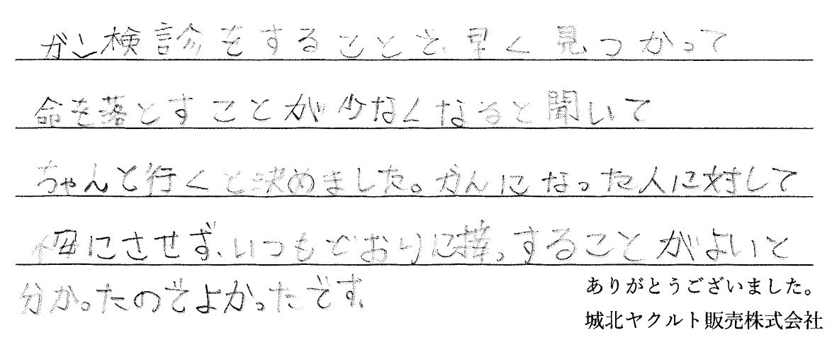 「がん検診が受けられる年齢になったら、欠かさずに受診をしようと思った」