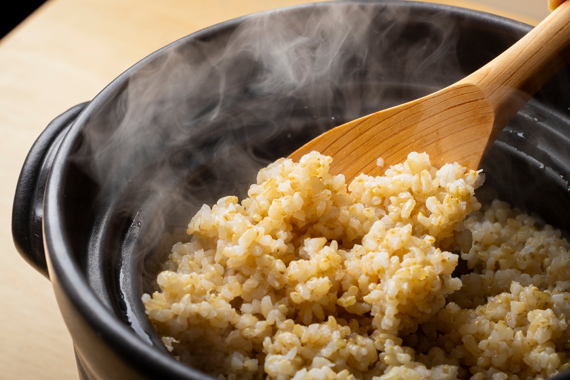 玄米はビタミンやミネラル、食物繊維などを豊富に含むコンディショニングフード。発芽玄米はわずかに発芽させることで、GABAなどを増加させて、食べやすくしたものです。洗ったり発芽させたりする手間がなく、白米同様にもっちりしたおいしいお米が楽しめます。