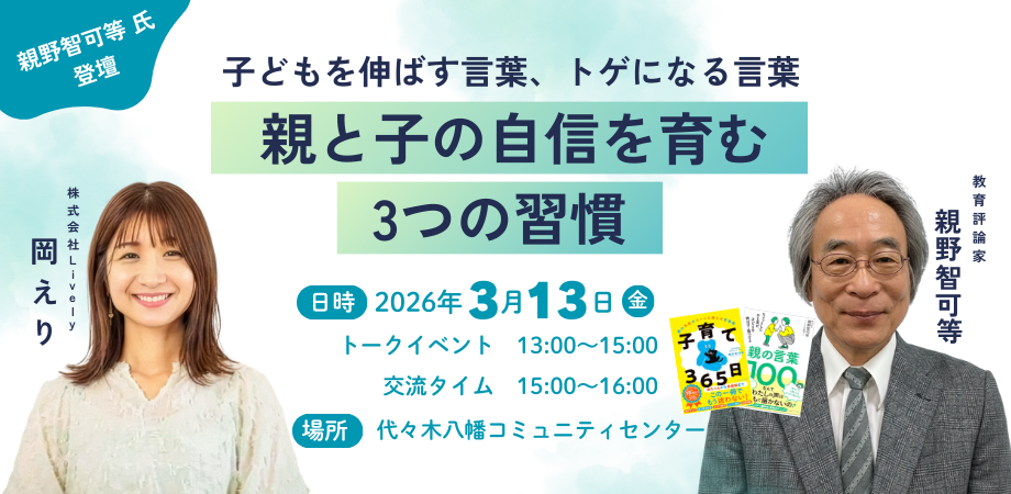 【満足度100%】「アドバイスより先に共感」教育評論家・親野智可等氏×Lively代表・岡が提言する、子の自己肯定感を守る“聴く力”。3/13対談レポート