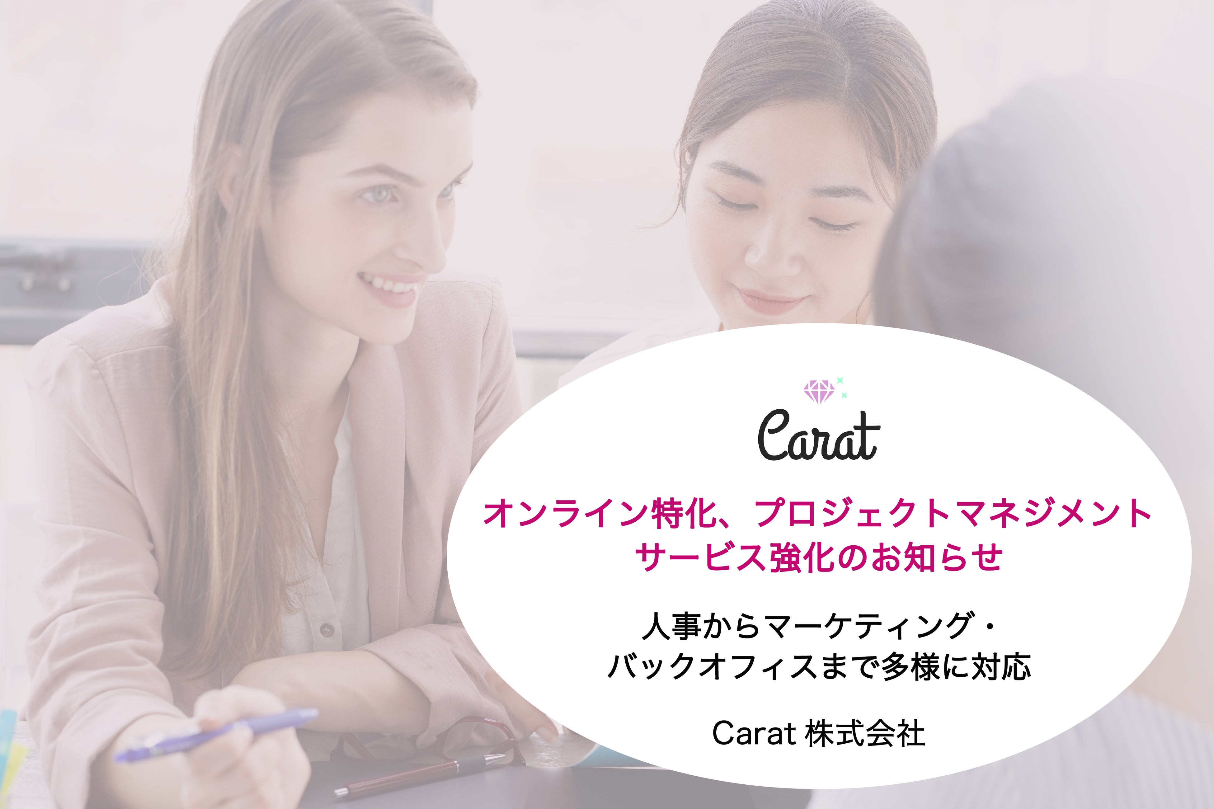 【Carat株式会社】人事からマーケティング・バックオフィスまで多様に対応、オンライン特化のプロジェクトマネジメントサービス強化のお知らせ