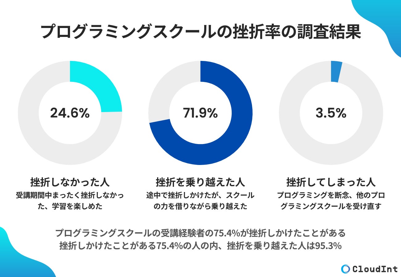 プログラミングスクール情報メディア「CloudInt」はプログラミングスクールの挫折率の調査結果を発表しました。