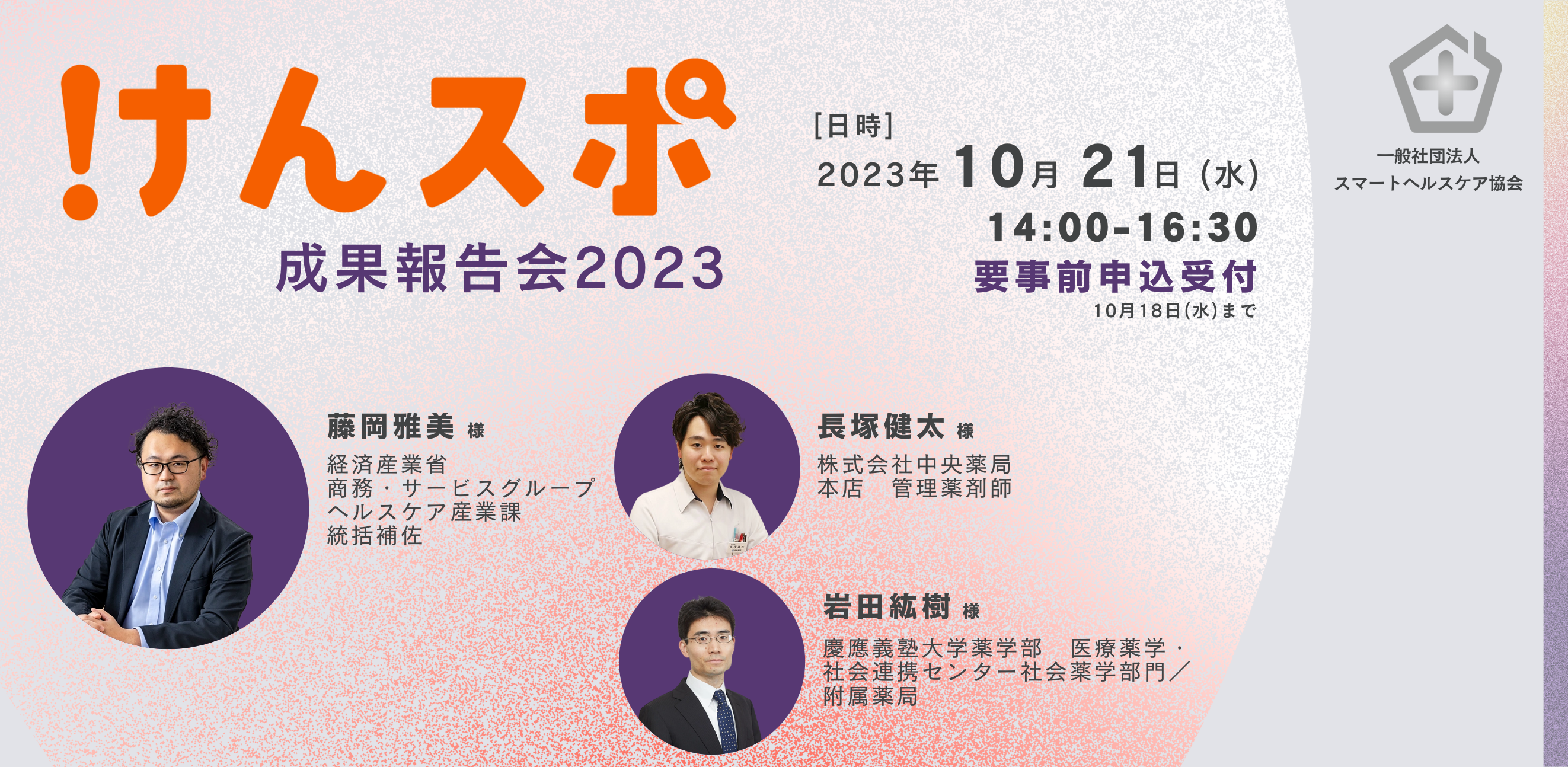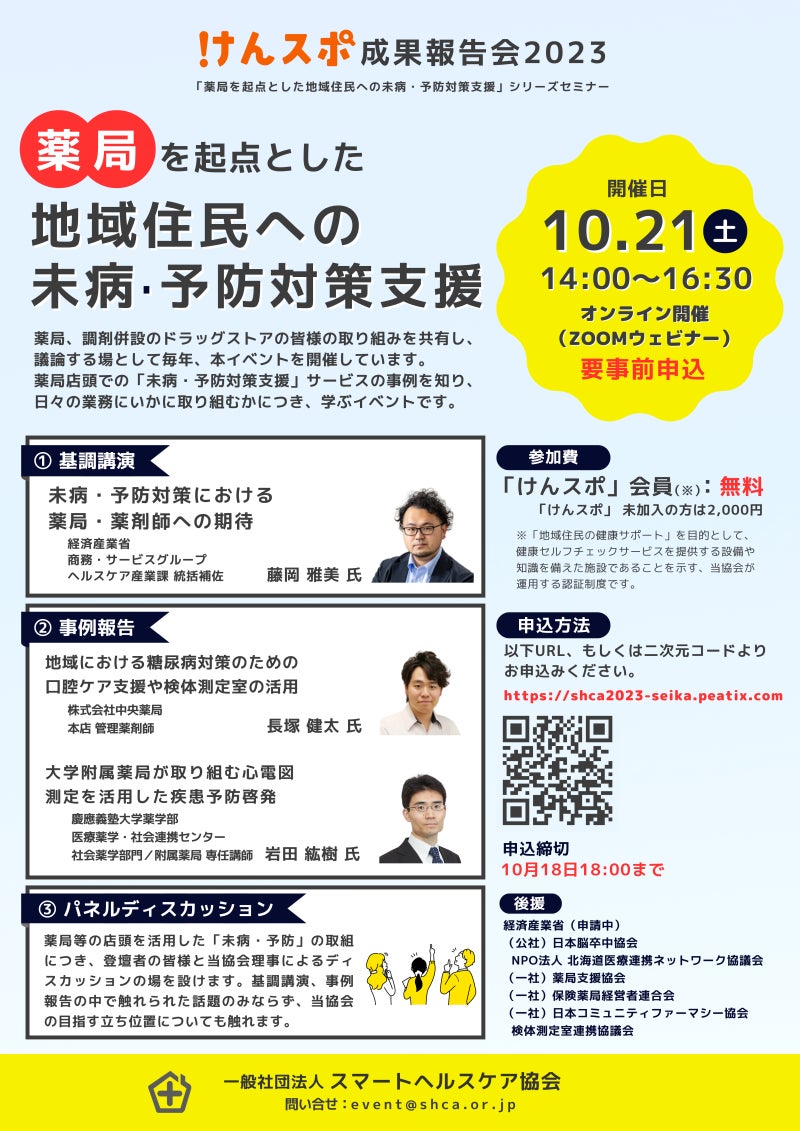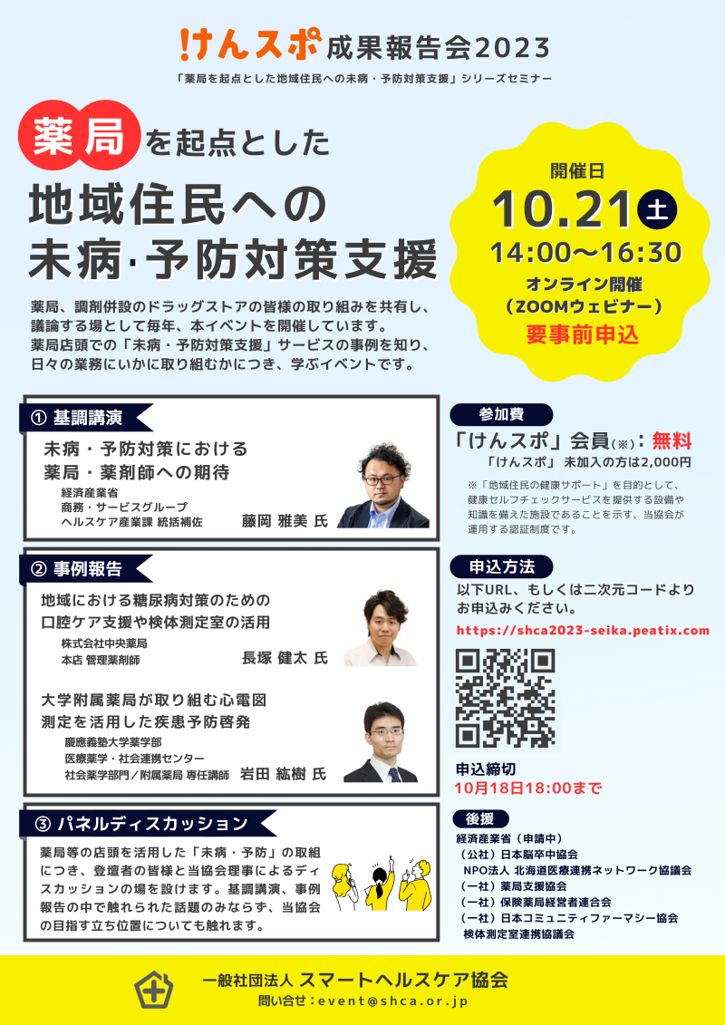 【会員無料】「薬局を起点とした地域住民への未病・予防対策支援」シリーズセミナー「けんスポ成果報告会2023」を開催(10月21日(土)14:00~16:30 )