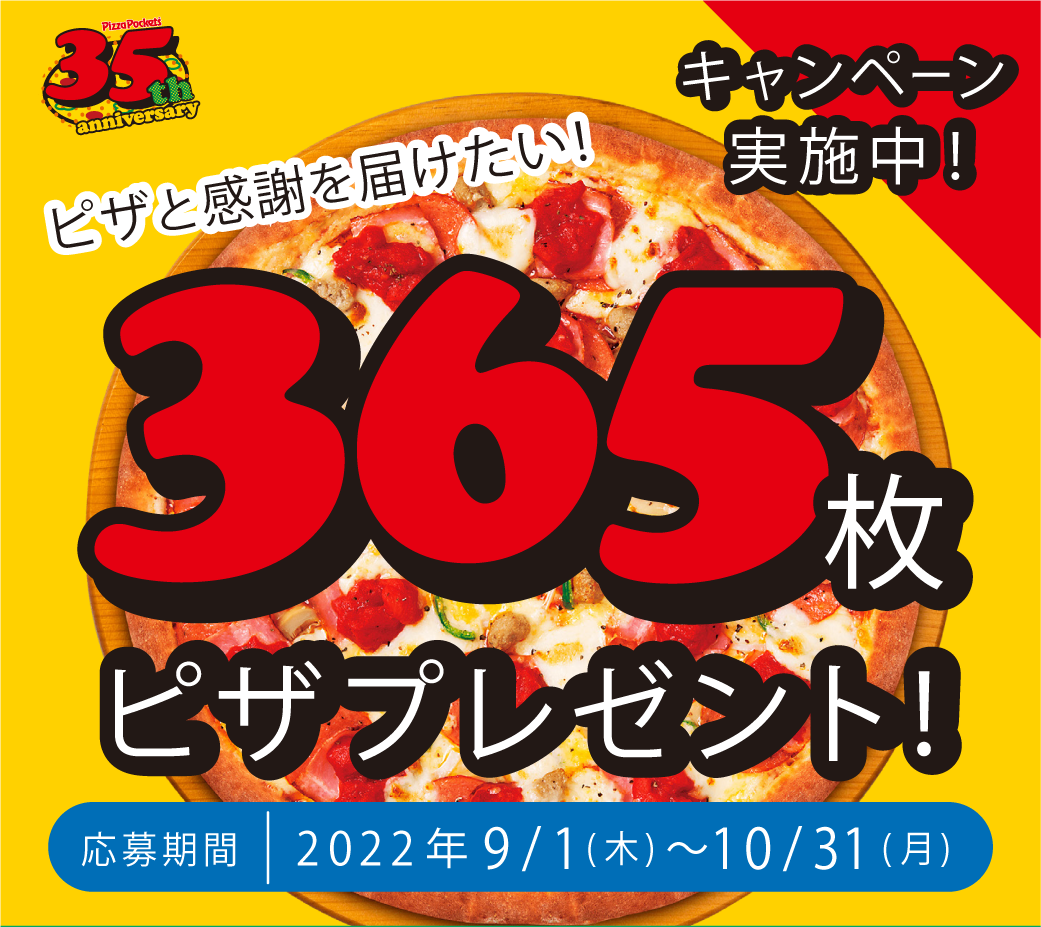 ピザポケット35周年記念キャンペーン!!ピザと感謝を届けたい EVERYDAY PIZZA! 365 枚ピザプレゼント!抽選で1名様限定!!