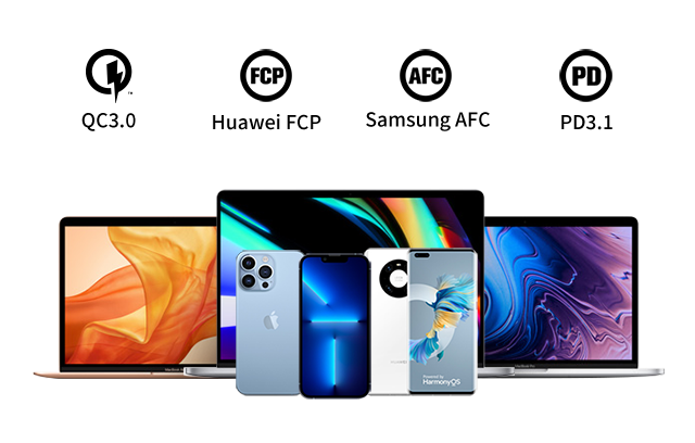 3ポートを備えており、最大三台のデバイスへ同時に充電することができます。さらに単ポートで最高140Wの高出力を達し、最新のMacBook Pro(2021)にも対応することが可能!